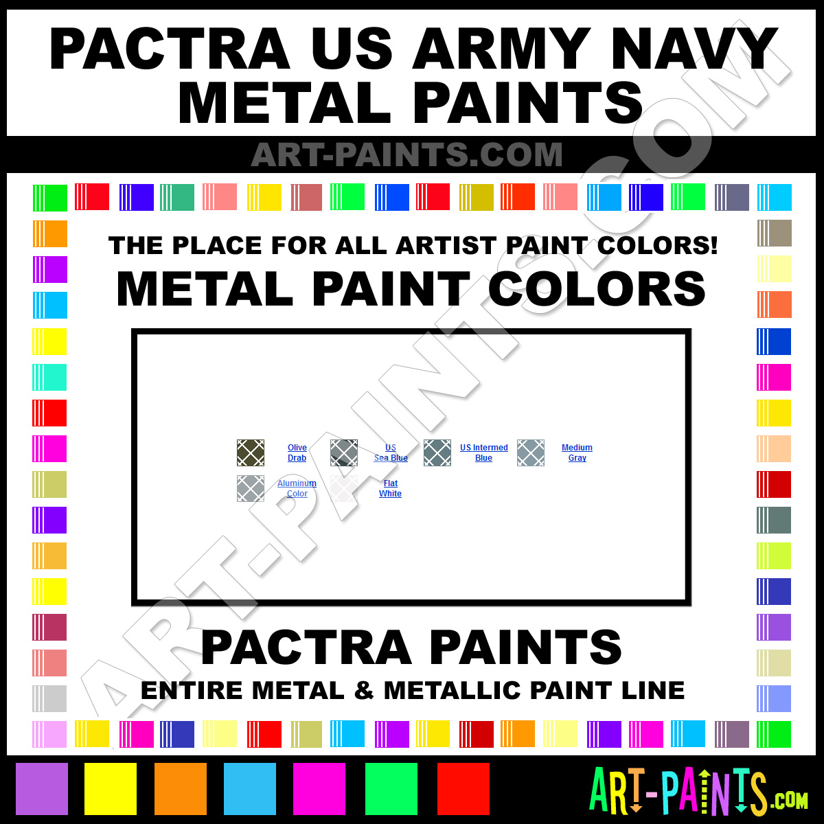 Pactra knows Metal Paints! They make a wonderful brand of Paint called Pactra US Army Navy Metal Paint Colors that suits all types of artists. They strive to perfect the process of color, good for Metal surfaces or good for giving you that Metallic look! They are one of the most popular Metal Paint Brand companies in the world. Enjoy their entire paint brand collection below. Pactra makes wonderful Artists Metal and Metallic Paints that everyone is sure to enjoy! Choose an Metal Paint Color below to view that Hue and Colors.     -Art-Paints.com
