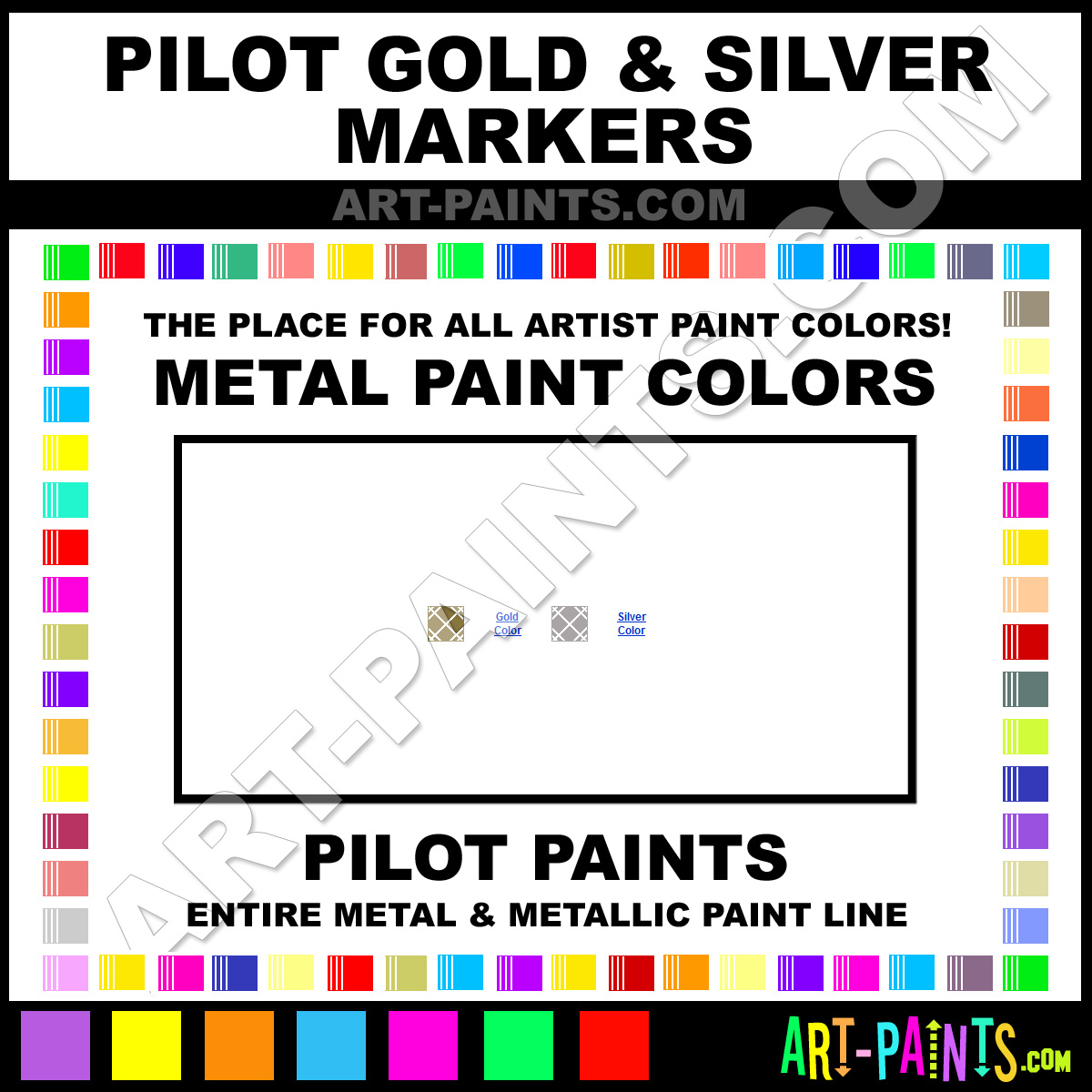 Pilot knows Metal Paints! They make a wonderful brand of paint called Pilot Gold and Silver Marker Metal Paint Colors that suits all types of artists. Great for Painting on Metal or Paints that look Metallic, either way they strive to perfect the process of color and are one of the most popular Metal Paint Brand companies in the world. Enjoy their entire Paint Brand collection below. Pilot makes wonderful Artists Metallic Paints that everyone is sure to enjoy! Choose a Metal Paint below to view that Hue or Color.     -Art-Paints.com