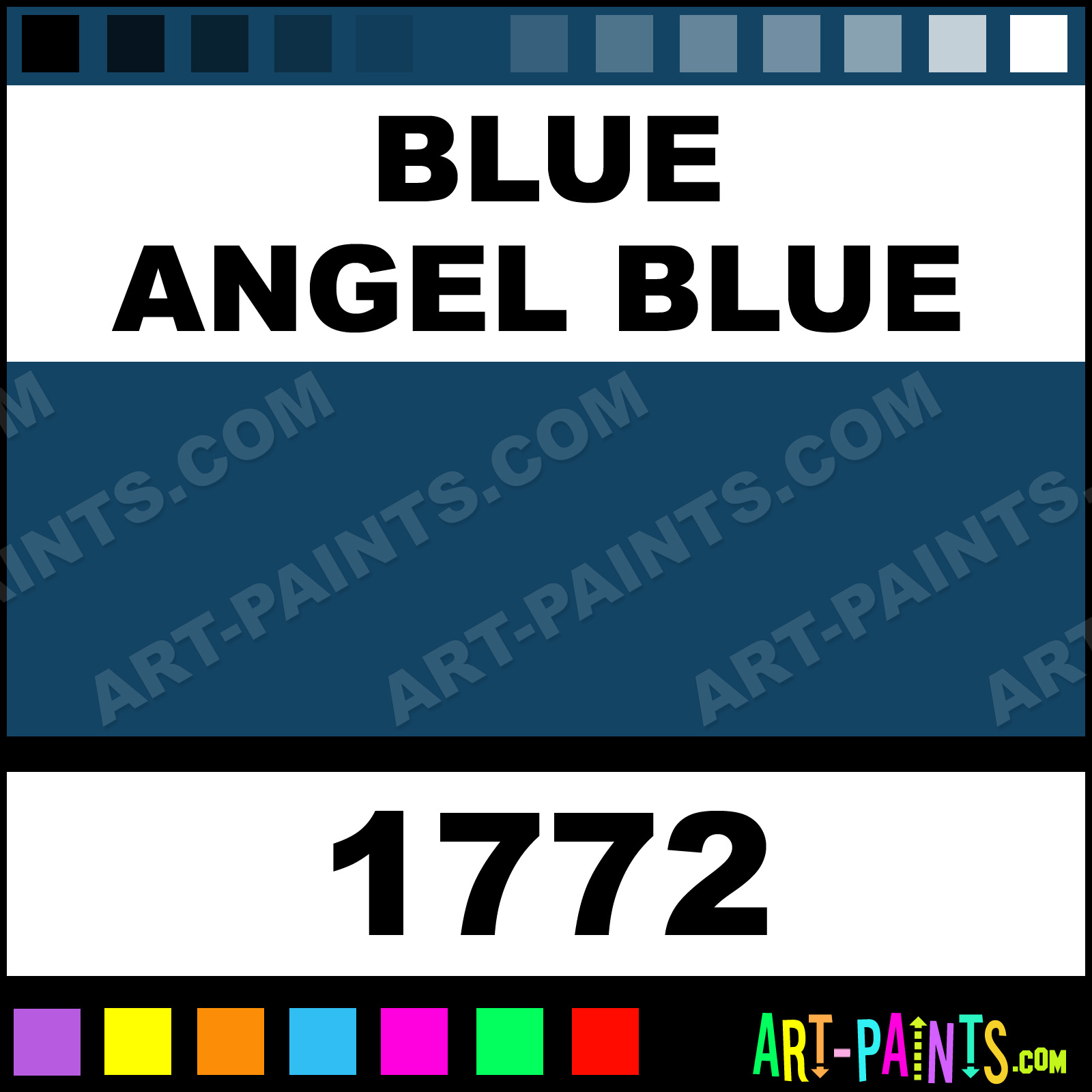 This beautiful Model Metal Paint Color shade is called Blue Angel Blue, and comes from a company called Testors. Their product number, along with the HTML color code, RGB, and CMYK codes are listed below. This Beautiful Shade of Blue Angel Blue and other Metal and Metallic Paint Colors can be found in the Testors Model Art Paint Gallery! Also be sure to browse through the other wonderful Professional Paint Color Galleries to see more of Testors Model Metal Paints and other Metallic Paint Manufacturers.   -Art-Paints.com