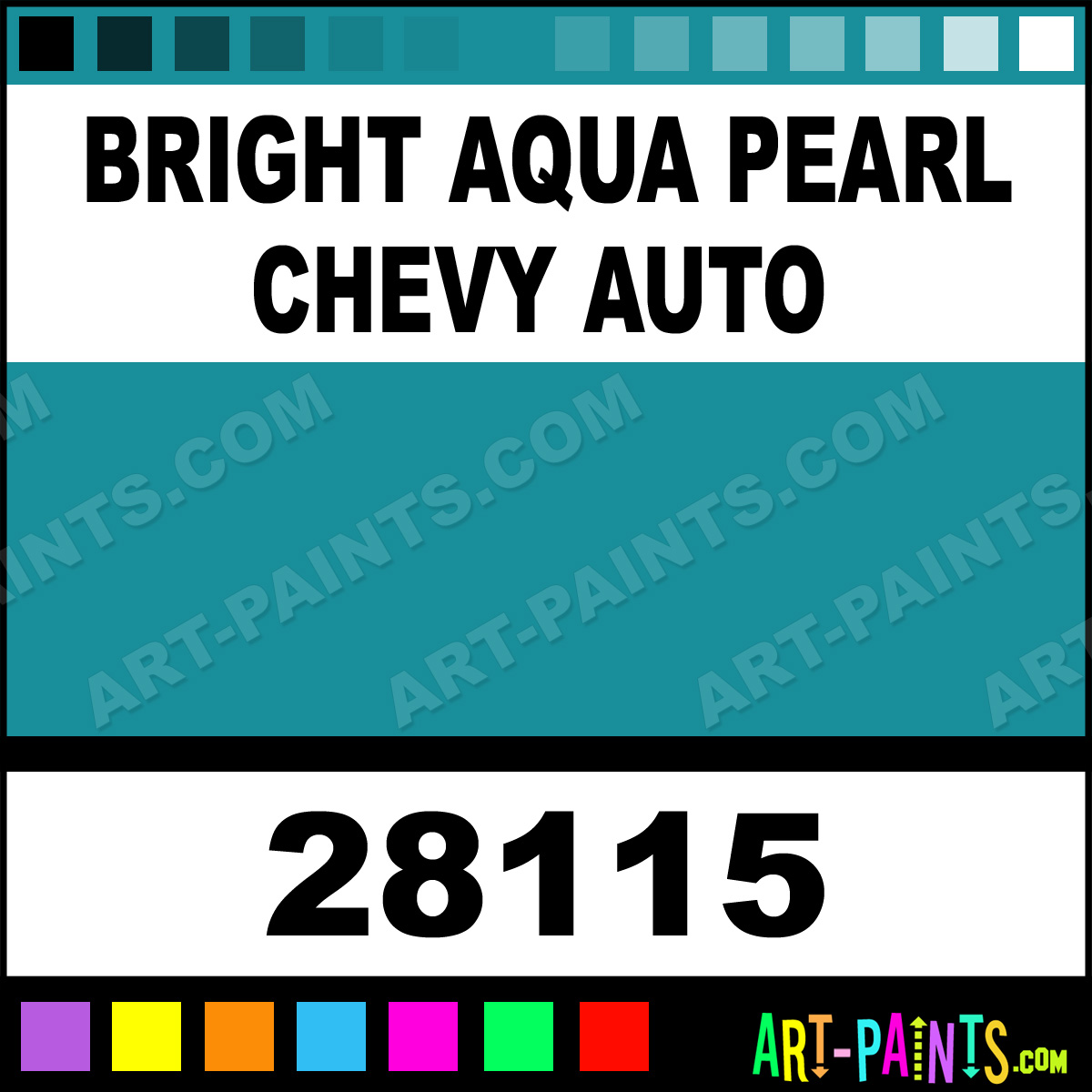 This beautiful Model Metal Paint Color shade is called Bright Aqua Pearl Chevy Auto, and comes from a company called Testors. Their product number, along with the HTML color code, RGB, and CMYK codes are listed below. This Beautiful Shade of Bright Aqua Pearl Chevy Auto and other Metal and Metallic Paint Colors can be found in the Testors Model Art Paint Gallery! Also be sure to browse through the other wonderful Professional Paint Color Galleries to see more of Testors Model Metal Paints and other Metallic Paint Manufacturers.   -Art-Paints.com