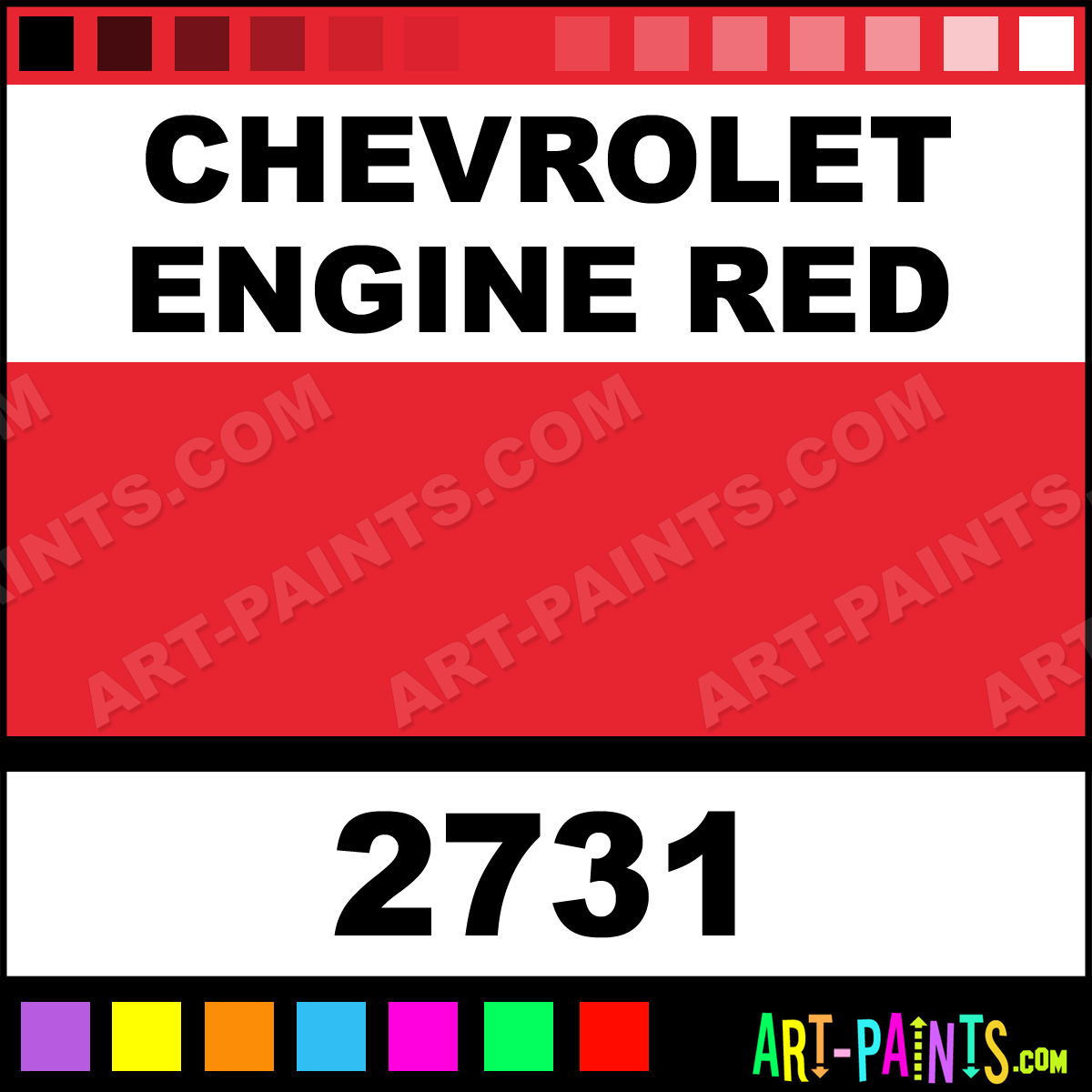 This beautiful Model Metal Paint Color shade is called Chevrolet Engine Red, and comes from a company called Testors. Their product number, along with the HTML color code, RGB, and CMYK codes are listed below. This Beautiful Shade of Chevrolet Engine Red and other Metal and Metallic Paint Colors can be found in the Testors Model Art Paint Gallery! Also be sure to browse through the other wonderful Professional Paint Color Galleries to see more of Testors Model Metal Paints and other Metallic Paint Manufacturers.   -Art-Paints.com