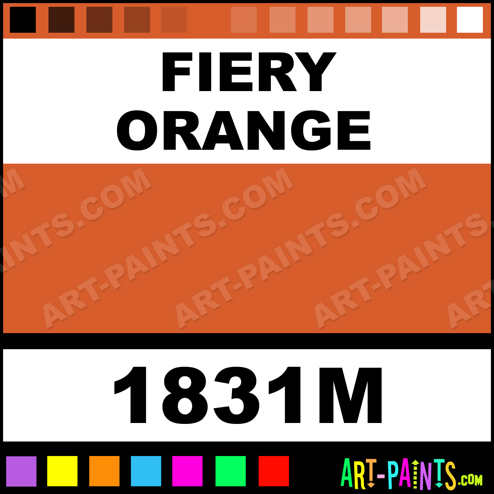 This beautiful Model Metal Paint Color shade is called Fiery Orange, and comes from a company called Testors. Their product number, along with the HTML color code, RGB, and CMYK codes are listed below. This Beautiful Shade of Fiery Orange and other Metal and Metallic Paint Colors can be found in the Testors Model Art Paint Gallery! Also be sure to browse through the other wonderful Professional Paint Color Galleries to see more of Testors Model Metal Paints and other Metallic Paint Manufacturers.   -Art-Paints.com