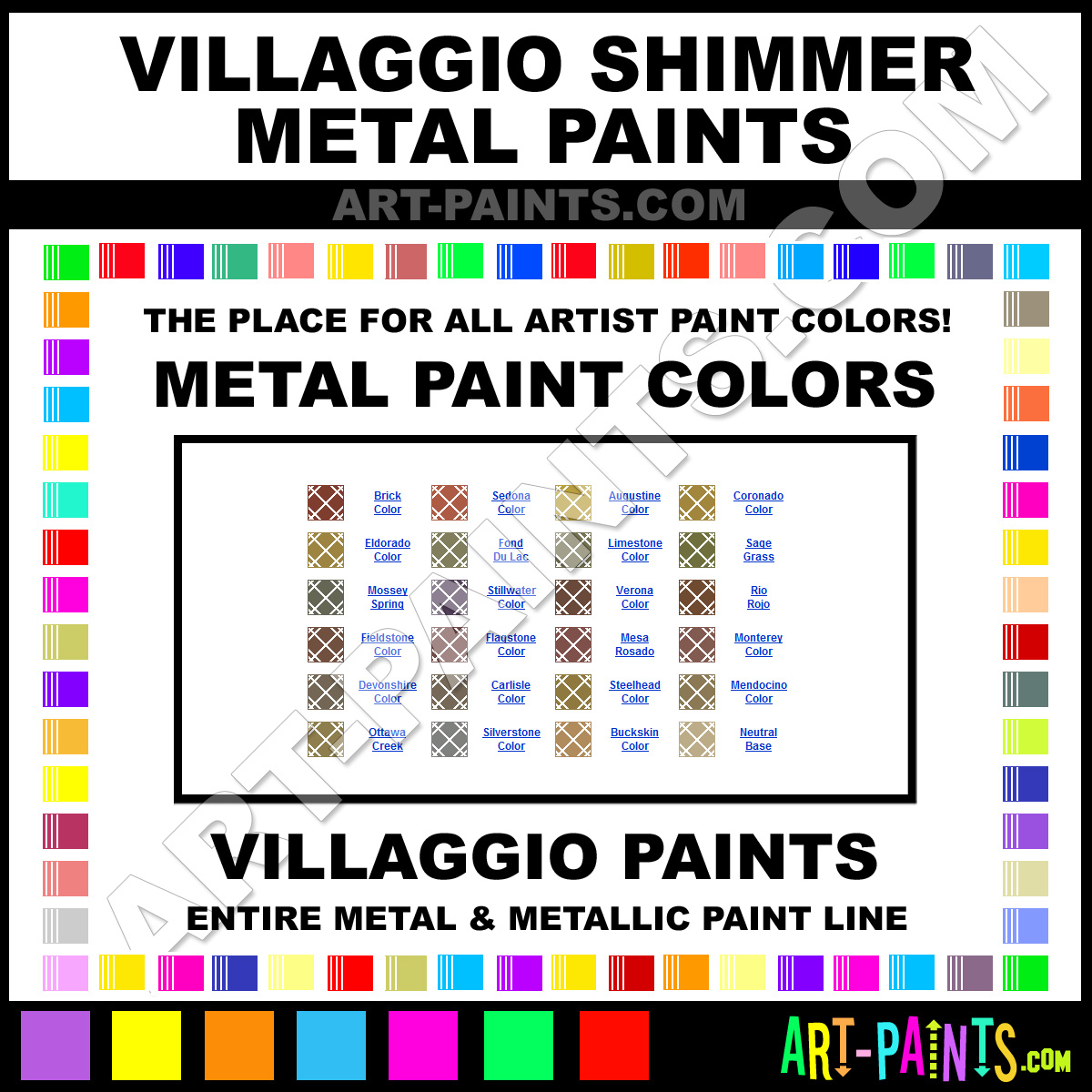 This beautiful Shimmer Metal or Metallic Paint shade is called Buckskin, and comes from a company called Villaggio. Their product number, along with the HTML color code, RGB, and CMYK codes are listed below. This Beautiful Shade of Buckskin and others can be found in the Villaggio Shimmer Art Paint Gallery! Also be sure to browse through the other wonderful Professional Color Galleries to see more of Villaggio Shimmer Metal Paints and other Metal and Metallic Paint Manufacturers.   -Art-Paints.com