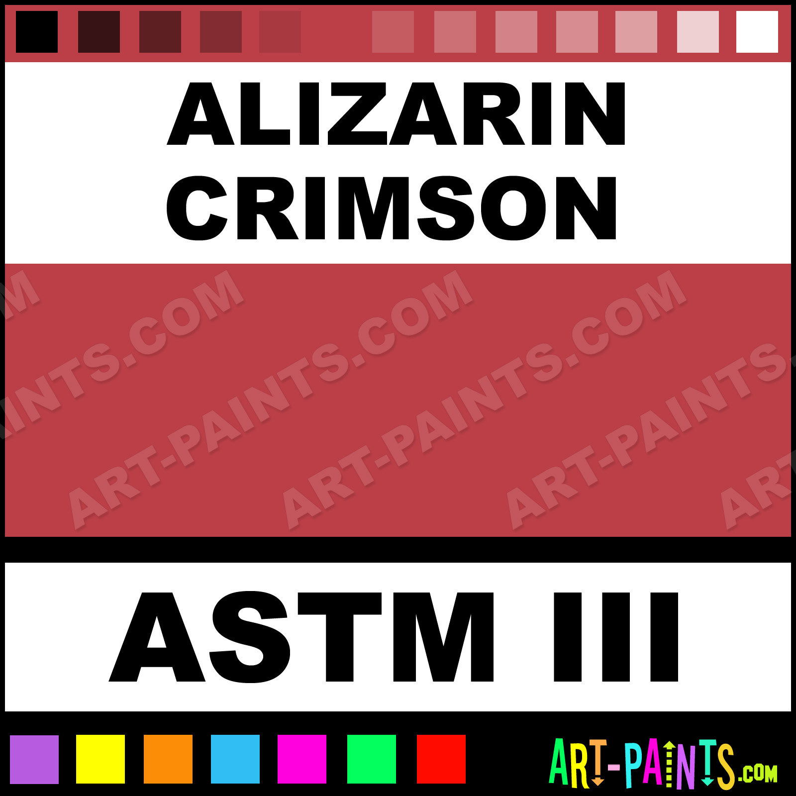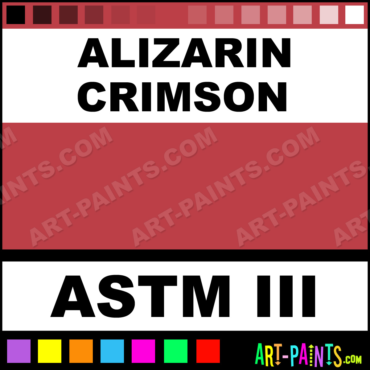This beautiful Prism Oil shade is called Alizarin Crimson, and comes from a company called Art Spectrum. Their product number, along with the HTML color code, RGB, and CMYK codes are listed below. This Beautiful Shade of Alizarin Crimson and others can be found in the Art Spectrum Prism Art Paint Gallery! Also be sure to browse through the other wonderful Professional Color Galleries to see more of Art Spectrum Prism Oil Brand Paints and other Paint Manufacturers. And as always, Paint Paint Paint! -Art-Paints.com