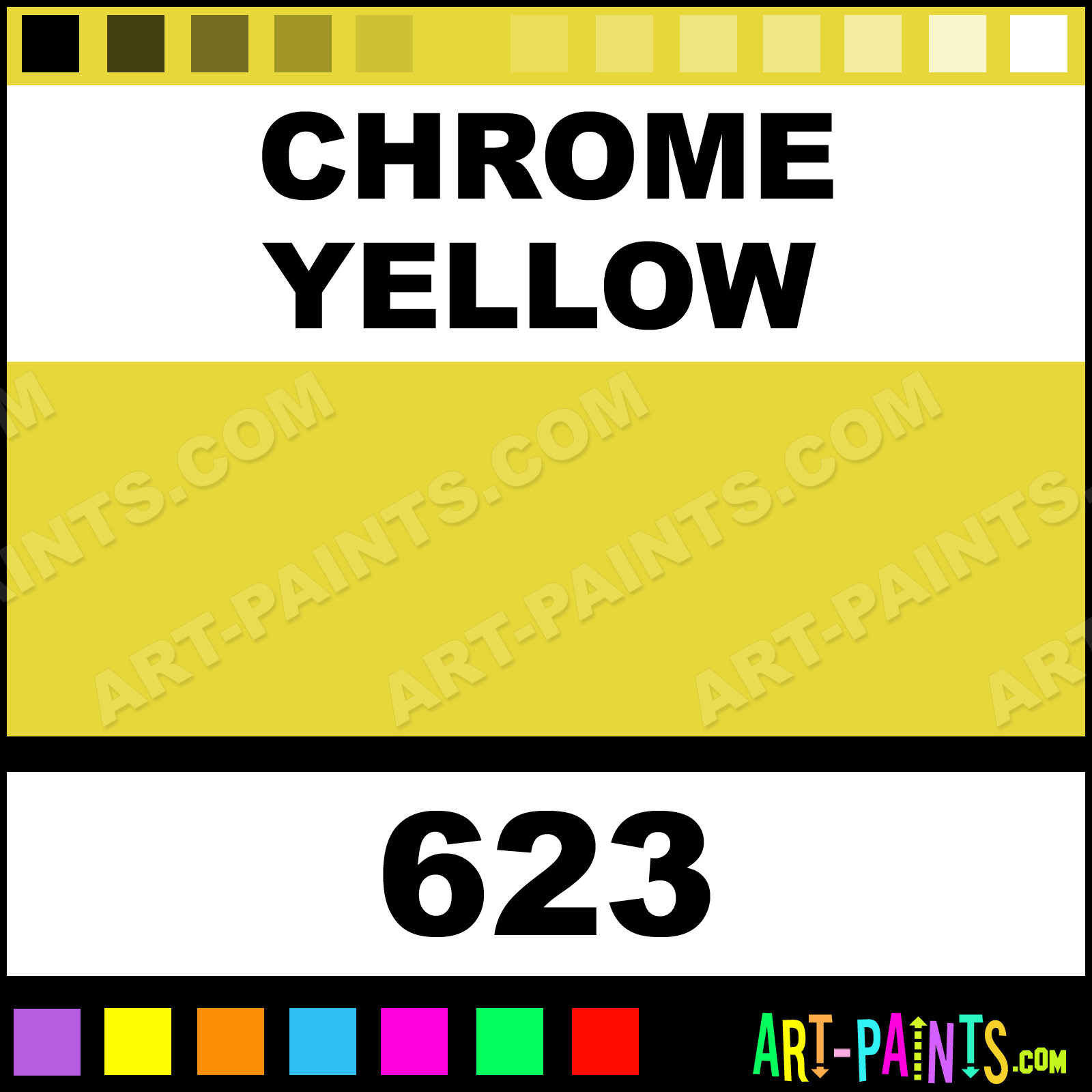 This beautiful Artist Oil shade is called Chrome Yellow, and comes from a company called Daler-Rowney. Their product number, along with the HTML color code, RGB, and CMYK codes are listed below. This Beautiful Shade of Chrome Yellow and others can be found in the Daler-Rowney Artist Art Paint Gallery! Also be sure to browse through the other wonderful Professional Color Galleries to see more of Daler-Rowney Artist Oil Brand Paints and other Paint Manufacturers. And as always, Paint Paint Paint! -Art-Paints.com