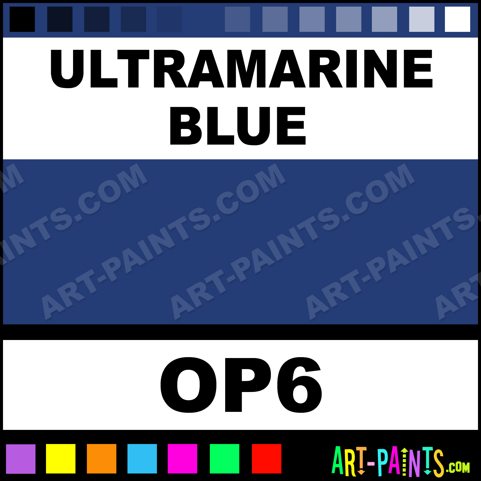 This beautiful Artist 6 Oil shade is called Ultramarine Blue, and comes from a company called Francheville. Their product number, along with the HTML color code, RGB, and CMYK codes are listed below. This Beautiful Shade of Ultramarine Blue and others can be found in the Francheville Artist 6 Art Paint Gallery! Also be sure to browse through the other wonderful Professional Color Galleries to see more of Francheville Artist 6 Oil Brand Paints and other Paint Manufacturers. And as always, Paint Paint Paint! -Art-Paints.com