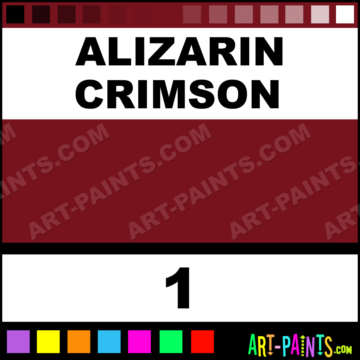 This beautiful Academy Oil shade is called Alizarin Crimson, and comes from a company called Grumbacher. Their product number, along with the HTML color code, RGB, and CMYK codes are listed below. This Beautiful Shade of Alizarin Crimson and others can be found in the Grumbacher Academy Art Paint Gallery! Also be sure to browse through the other wonderful Professional Color Galleries to see more of Grumbacher Academy Oil Brand Paints and other Paint Manufacturers. And as always, Paint Paint Paint! -Art-Paints.com