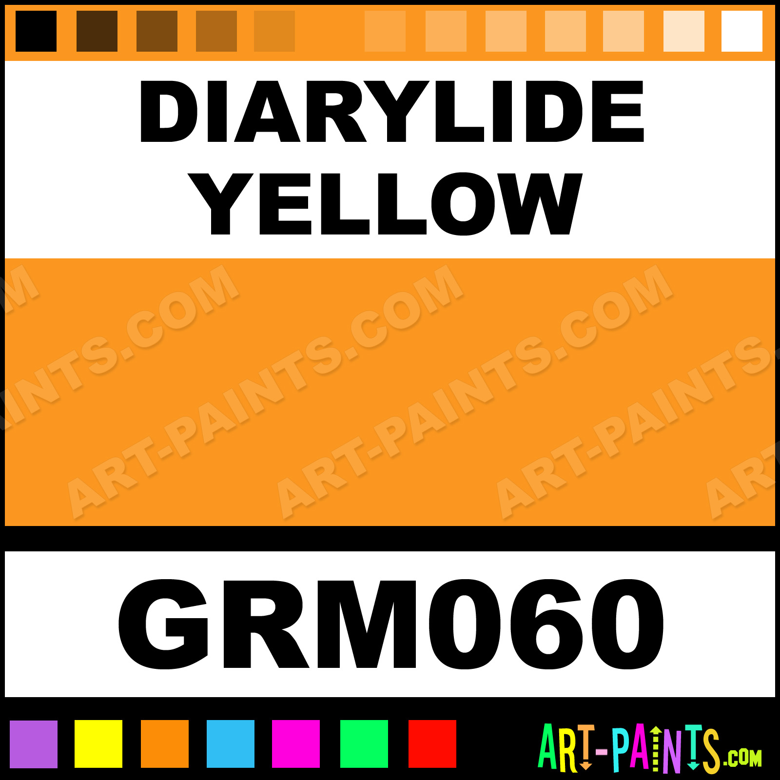 This beautiful Max Oil shade is called Diarylide Yellow, and comes from a company called Grumbacher. Their product number, along with the HTML color code, RGB, and CMYK codes are listed below. This Beautiful Shade of Diarylide Yellow and others can be found in the Grumbacher Max Art Paint Gallery! Also be sure to browse through the other wonderful Professional Color Galleries to see more of Grumbacher Max Oil Brand Paints and other Paint Manufacturers. And as always, Paint Paint Paint! -Art-Paints.com