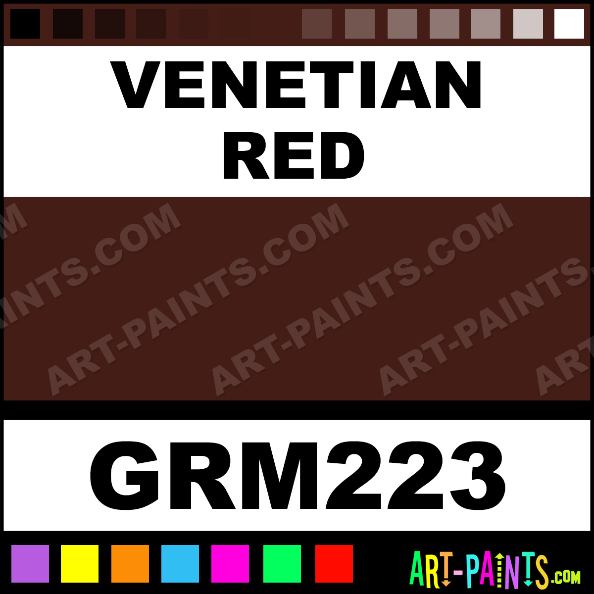 This beautiful Max Oil shade is called Venetian Red, and comes from a company called Grumbacher. Their product number, along with the HTML color code, RGB, and CMYK codes are listed below. This Beautiful Shade of Venetian Red and others can be found in the Grumbacher Max Art Paint Gallery! Also be sure to browse through the other wonderful Professional Color Galleries to see more of Grumbacher Max Oil Brand Paints and other Paint Manufacturers. And as always, Paint Paint Paint! -Art-Paints.com