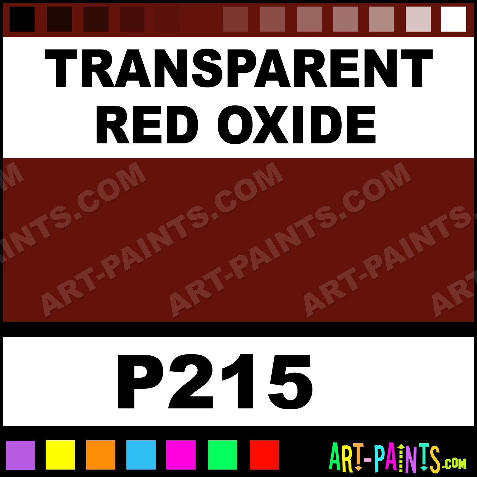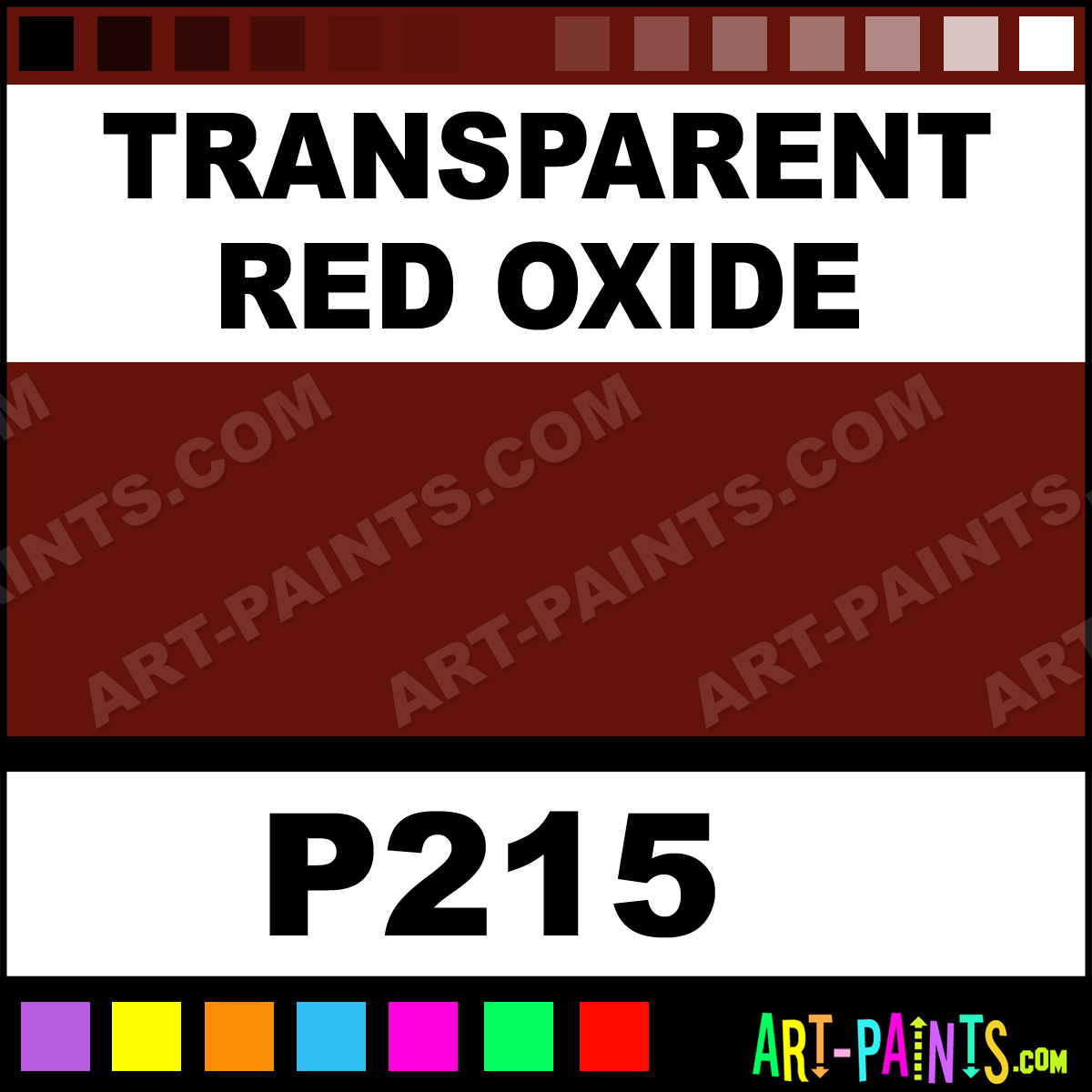 This beautiful Pre-Tested Oil shade is called Transparent Red Oxide, and comes from a company called Grumbacher. Their product number, along with the HTML color code, RGB, and CMYK codes are listed below. This Beautiful Shade of Transparent Red Oxide and others can be found in the Grumbacher Pre-Tested Art Paint Gallery! Also be sure to browse through the other wonderful Professional Color Galleries to see more of Grumbacher Pre-Tested Oil Brand Paints and other Paint Manufacturers. And as always, Paint Paint Paint! -Art-Paints.com