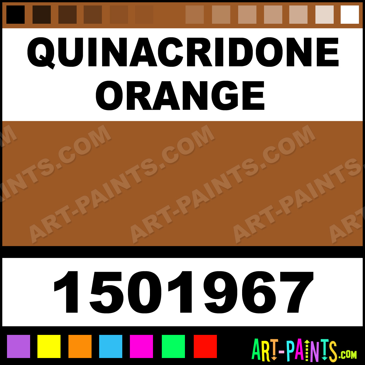 This beautiful Pro-Water Miscible Oil shade is called Quinacridone Orange, and comes from a company called Grumbacher. Their product number, along with the HTML color code, RGB, and CMYK codes are listed below. This Beautiful Shade of Quinacridone Orange and others can be found in the Grumbacher Pro-Water Miscible Art Paint Gallery! Also be sure to browse through the other wonderful Professional Color Galleries to see more of Grumbacher Pro-Water Miscible Oil Brand Paints and other Paint Manufacturers. And as always, Paint Paint Paint! -Art-Paints.com