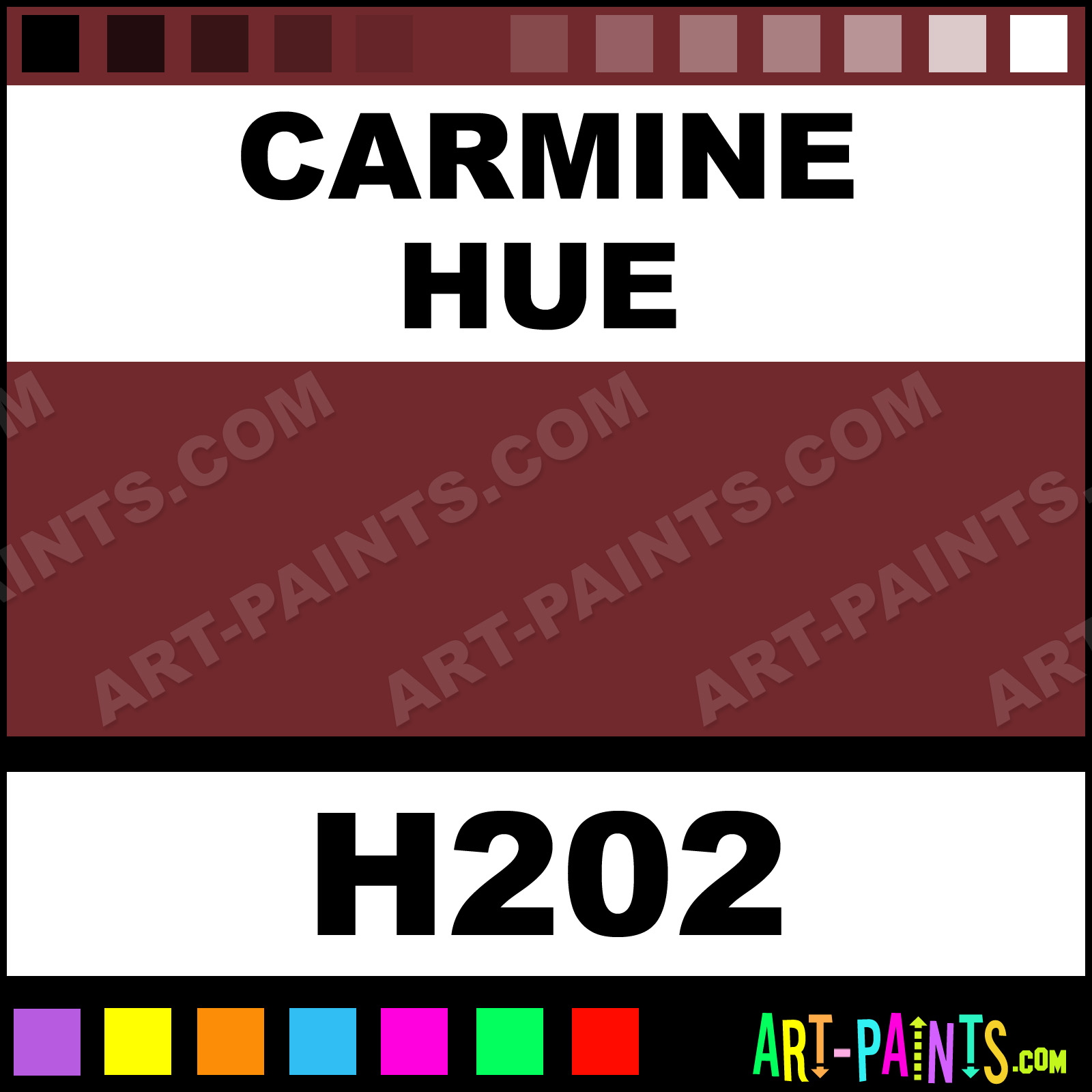 This beautiful Artist Oil shade is called Carmine, and comes from a company called Holbein. Their product number, along with the HTML color code, RGB, and CMYK codes are listed below. This Beautiful Shade of Carmine and others can be found in the Holbein Artist Art Paint Gallery! Also be sure to browse through the other wonderful Professional Color Galleries to see more of Holbein Artist Oil Brand Paints and other Paint Manufacturers. And as always, Paint Paint Paint! -Art-Paints.com