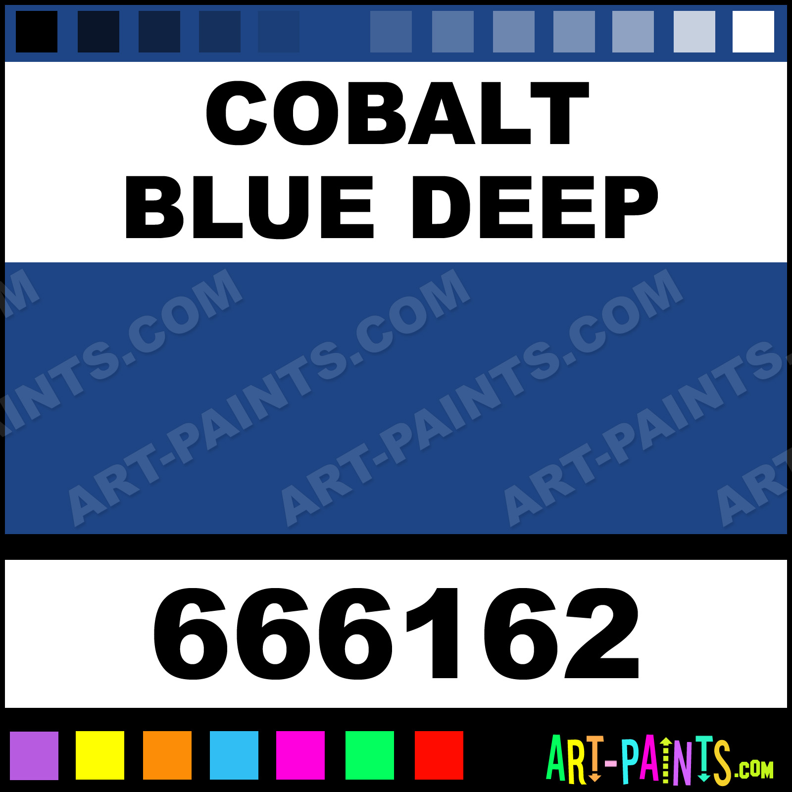 This beautiful Extra Fine Oil shade is called Cobalt Blue Deep, and comes from a company called Holbein. Their product number, along with the HTML color code, RGB, and CMYK codes are listed below. This Beautiful Shade of Cobalt Blue Deep and others can be found in the Holbein Extra Fine Art Paint Gallery! Also be sure to browse through the other wonderful Professional Color Galleries to see more of Holbein Extra Fine Oil Brand Paints and other Paint Manufacturers. And as always, Paint Paint Paint! -Art-Paints.com