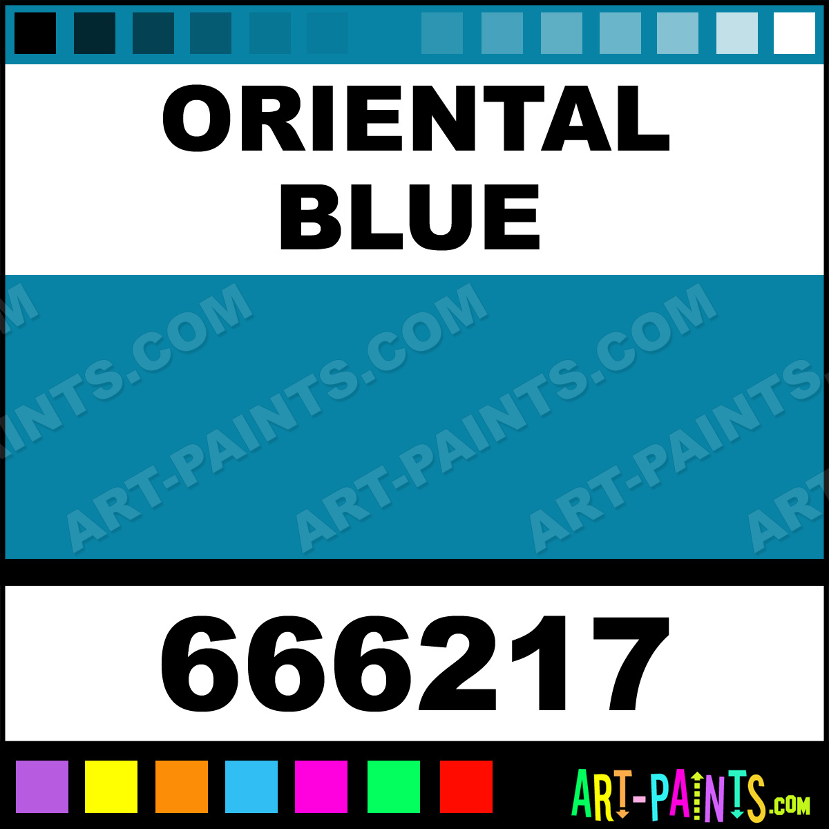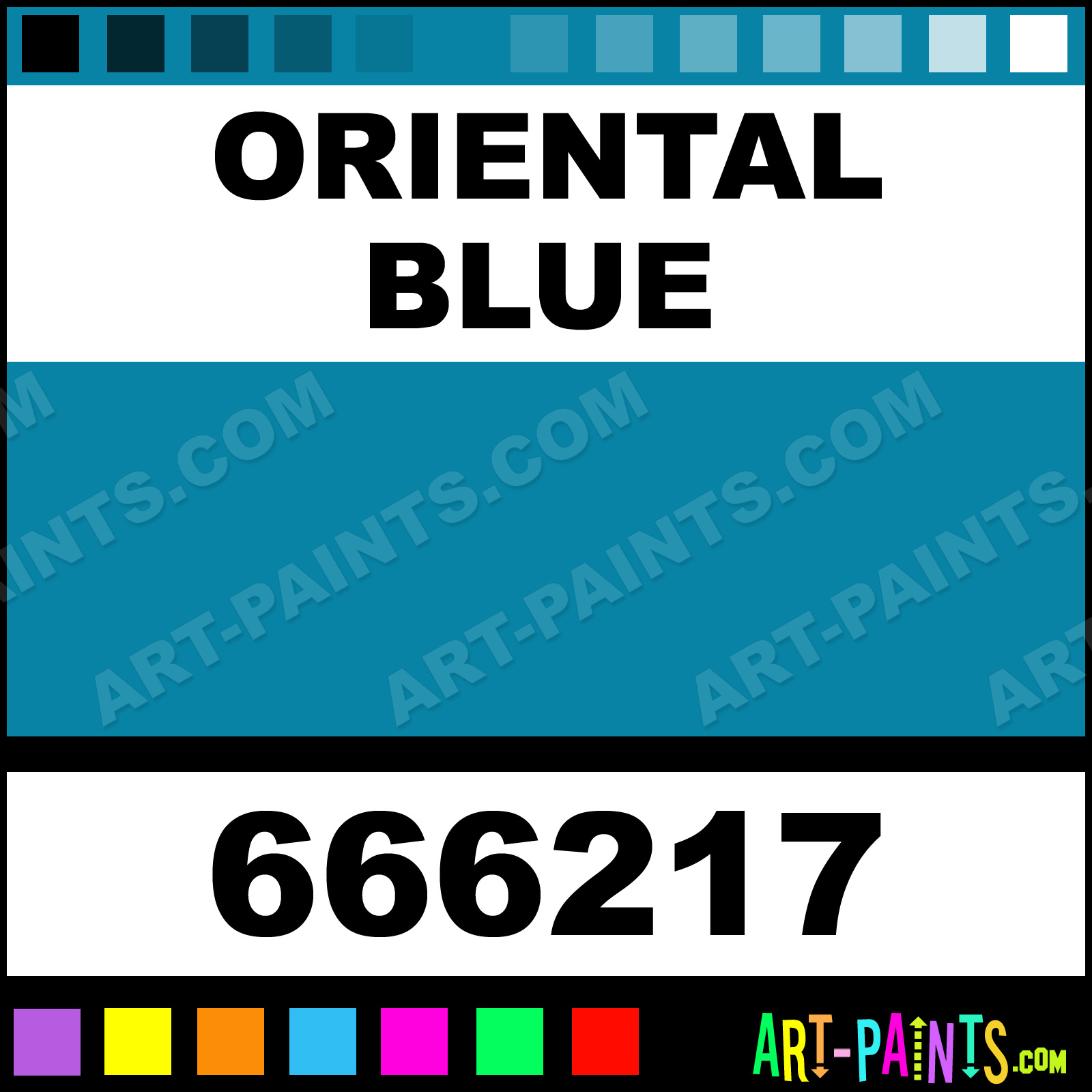 This beautiful Extra Fine Oil shade is called Oriental Blue, and comes from a company called Holbein. Their product number, along with the HTML color code, RGB, and CMYK codes are listed below. This Beautiful Shade of Oriental Blue and others can be found in the Holbein Extra Fine Art Paint Gallery! Also be sure to browse through the other wonderful Professional Color Galleries to see more of Holbein Extra Fine Oil Brand Paints and other Paint Manufacturers. And as always, Paint Paint Paint! -Art-Paints.com