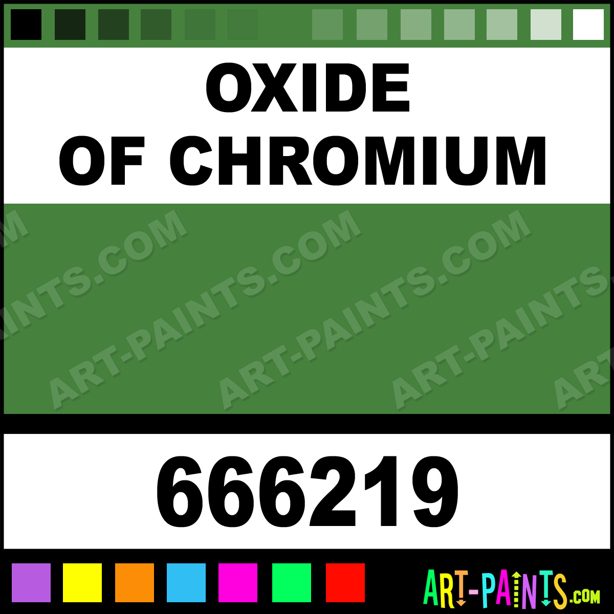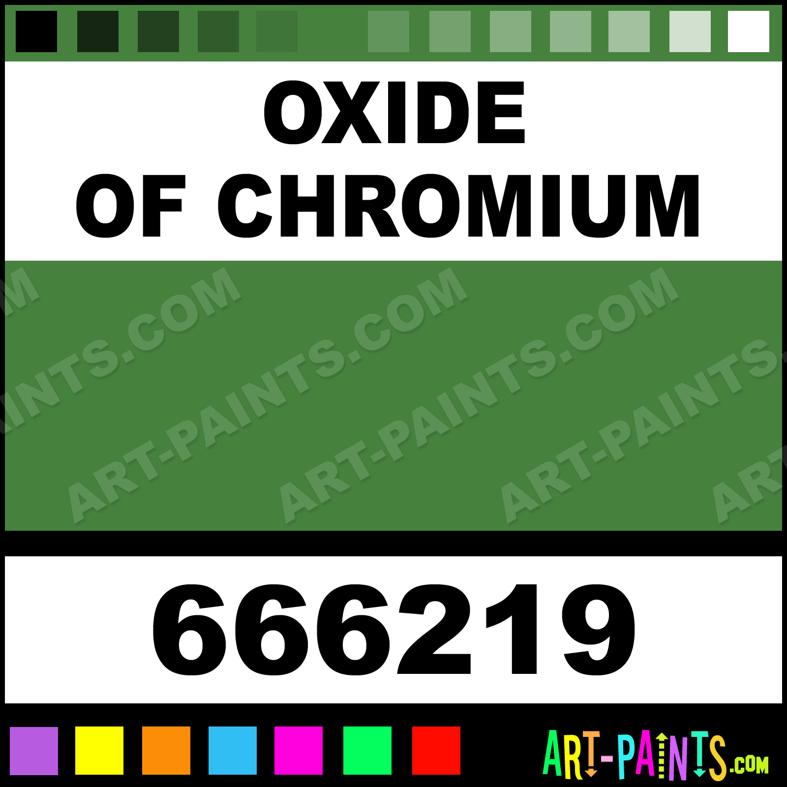 This beautiful Extra Fine Oil shade is called Oxide Of Chromium, and comes from a company called Holbein. Their product number, along with the HTML color code, RGB, and CMYK codes are listed below. This Beautiful Shade of Oxide Of Chromium and others can be found in the Holbein Extra Fine Art Paint Gallery! Also be sure to browse through the other wonderful Professional Color Galleries to see more of Holbein Extra Fine Oil Brand Paints and other Paint Manufacturers. And as always, Paint Paint Paint! -Art-Paints.com