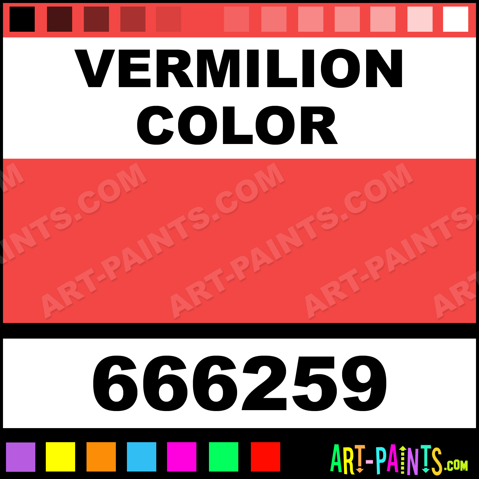 This beautiful Extra Fine Oil shade is called Vermilion Color, and comes from a company called Holbein. Their product number, along with the HTML color code, RGB, and CMYK codes are listed below. This Beautiful Shade of Vermilion Color and others can be found in the Holbein Extra Fine Art Paint Gallery! Also be sure to browse through the other wonderful Professional Color Galleries to see more of Holbein Extra Fine Oil Brand Paints and other Paint Manufacturers. And as always, Paint Paint Paint! -Art-Paints.com