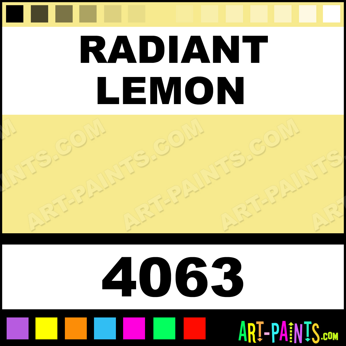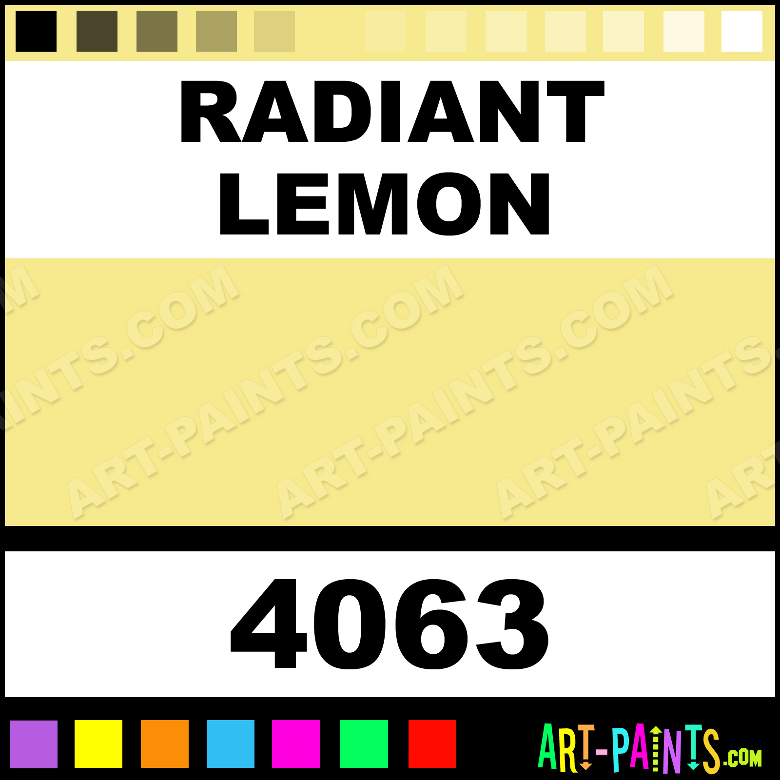 This beautiful Gamblin Oil shade is called Radiant Lemon, and comes from a company called Kevin Macpherson. Their product number, along with the HTML color code, RGB, and CMYK codes are listed below. This Beautiful Shade of Radiant Lemon and others can be found in the Kevin Macpherson Gamblin Art Paint Gallery! Also be sure to browse through the other wonderful Professional Color Galleries to see more of Kevin Macpherson Gamblin Oil Brand Paints and other Paint Manufacturers. And as always, Paint Paint Paint! -Art-Paints.com