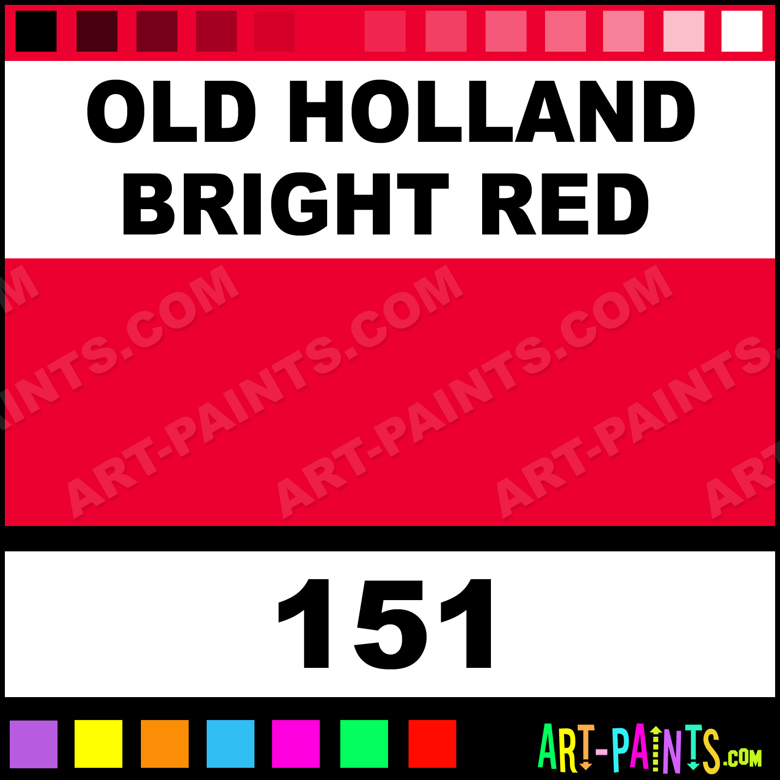 This beautiful Classic Oil shade is called Old Holland Bright Red, and comes from a company called Old Holland. Their product number, along with the HTML color code, RGB, and CMYK codes are listed below. This Beautiful Shade of Old Holland Bright Red and others can be found in the Old Holland Classic Art Paint Gallery! Also be sure to browse through the other wonderful Professional Color Galleries to see more of Old Holland Classic Oil Brand Paints and other Paint Manufacturers. And as always, Paint Paint Paint! -Art-Paints.com