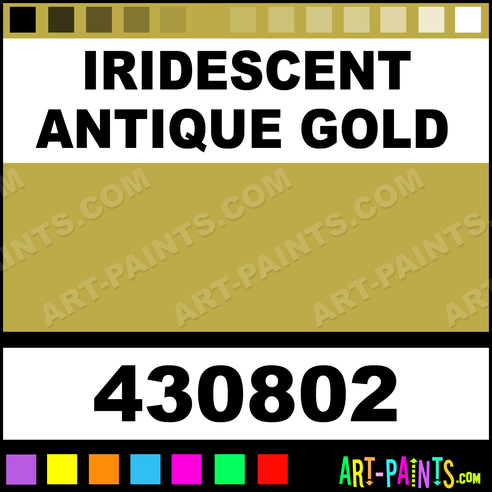 This beautiful Artist Oil shade is called Iridescent Antique Gold, and comes from a company called Permalba. Their product number, along with the HTML color code, RGB, and CMYK codes are listed below. This Beautiful Shade of Iridescent Antique Gold and others can be found in the Permalba Artist Art Paint Gallery! Also be sure to browse through the other wonderful Professional Color Galleries to see more of Permalba Artist Oil Brand Paints and other Paint Manufacturers. And as always, Paint Paint Paint! -Art-Paints.com