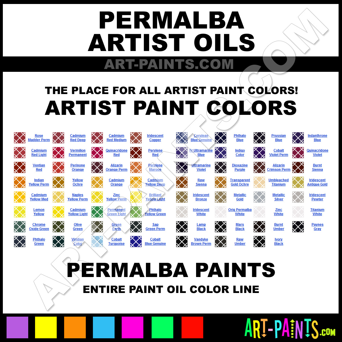 Permalba knows Oil paints! They make a wonderful brand of paint called Permalba Artist Oil Colors that suits all types of artists. They strive to perfect the process of color and are one of the most popular Oil Paint Brand companies in the world. Enjoy their entire paint brand collection from the list below. Permalba makes wonderful Artists Paints that everyone is sure to enjoy! Choose an Oil Paint Color below to view that Hue and all their great related color paints. Paint on!     -Art-Paints.com