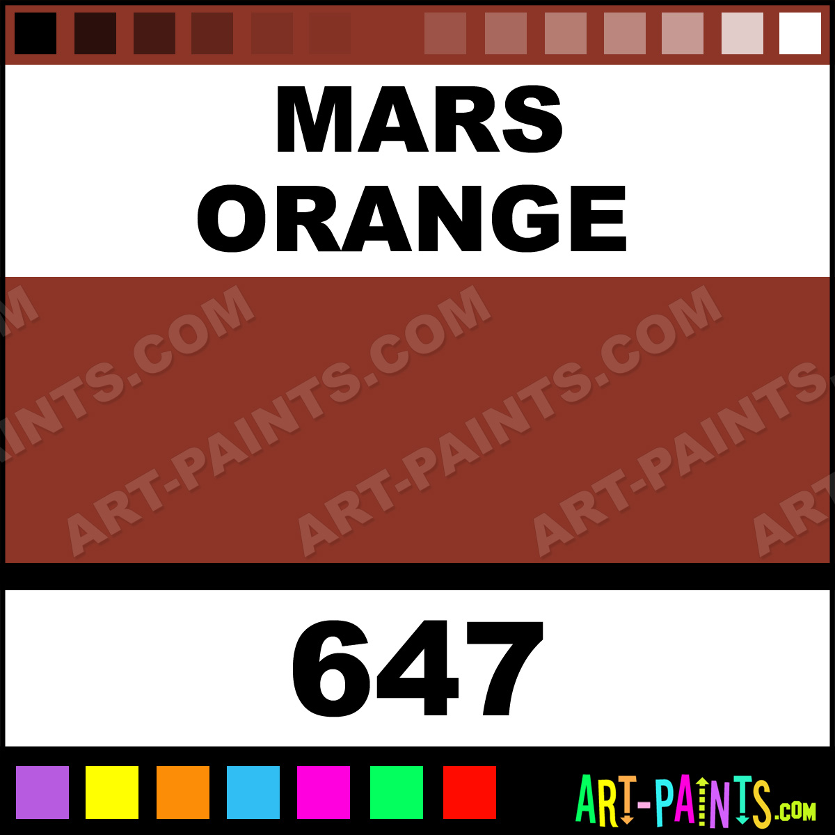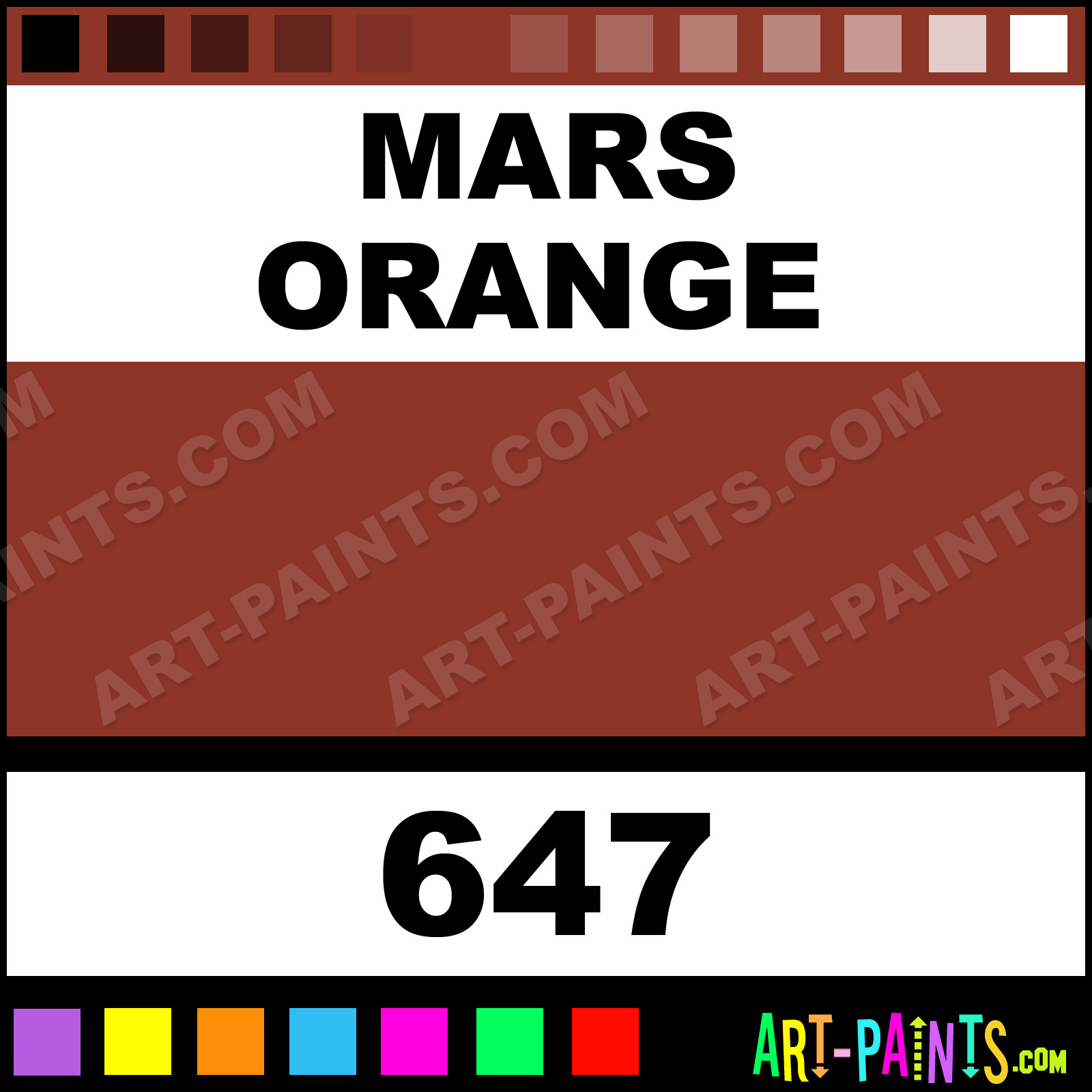 This beautiful Artists Extra Fine Oils shade is called Mars Orange, and comes from a company called Sennelier. Their product number, along with the HTML color code, RGB, and CMYK codes are listed below. This Beautiful Shade of Mars Orange and others can be found in the Sennelier Artists Extra Fine Art Paint Gallery! Also be sure to browse through the other wonderful Professional Color Galleries to see more of Sennelier Artists Extra Fine Oils Brand Paints and other Paint Manufacturers. And as always, Paint Paint Paint! -Art-Paints.com