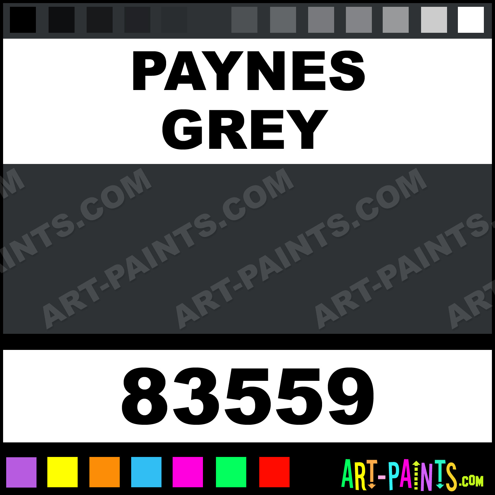 This beautiful Urban Artist Oil shade is called Paynes Grey, and comes from a company called SoHo. Their product number, along with the HTML color code, RGB, and CMYK codes are listed below. This Beautiful Shade of Paynes Grey and others can be found in the SoHo Urban Artist Art Paint Gallery! Also be sure to browse through the other wonderful Professional Color Galleries to see more of SoHo Urban Artist Oil Brand Paints and other Paint Manufacturers. And as always, Paint Paint Paint! -Art-Paints.com