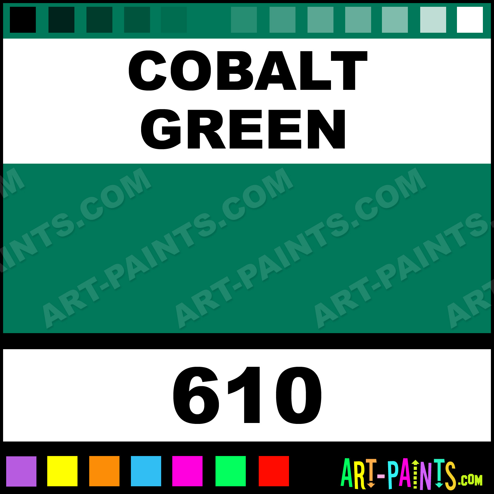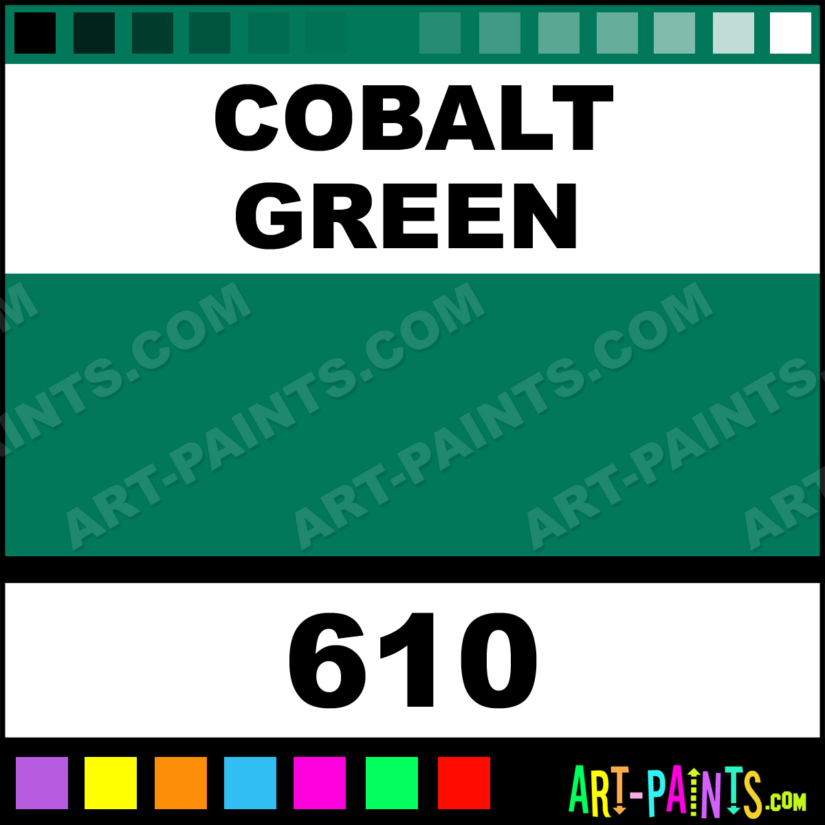 This beautiful Rembrandt Oil shade is called Cobalt Green, and comes from a company called Talens. Their product number, along with the HTML color code, RGB, and CMYK codes are listed below. This Beautiful Shade of Cobalt Green and others can be found in the Talens Rembrandt Art Paint Gallery! Also be sure to browse through the other wonderful Professional Color Galleries to see more of Talens Rembrandt Oil Brand Paints and other Paint Manufacturers. And as always, Paint Paint Paint! -Art-Paints.com