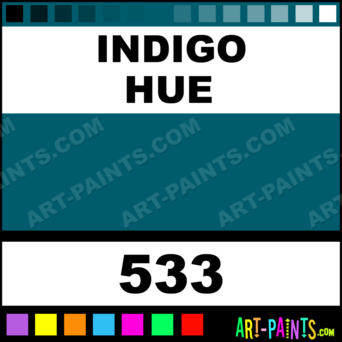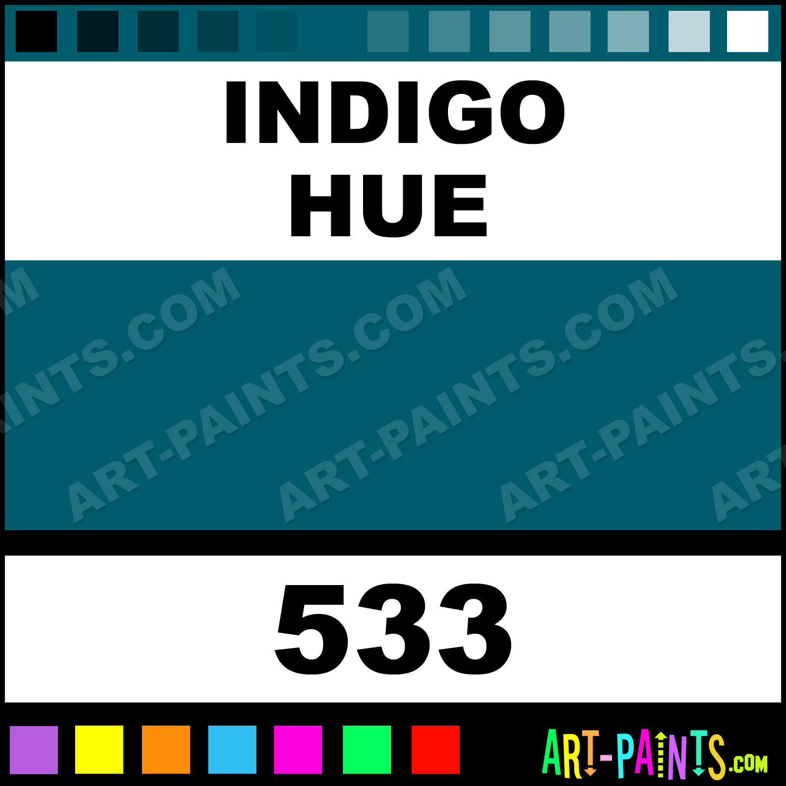 This beautiful Rembrandt Oil shade is called Indigo, and comes from a company called Talens. Their product number, along with the HTML color code, RGB, and CMYK codes are listed below. This Beautiful Shade of Indigo and others can be found in the Talens Rembrandt Art Paint Gallery! Also be sure to browse through the other wonderful Professional Color Galleries to see more of Talens Rembrandt Oil Brand Paints and other Paint Manufacturers. And as always, Paint Paint Paint! -Art-Paints.com
