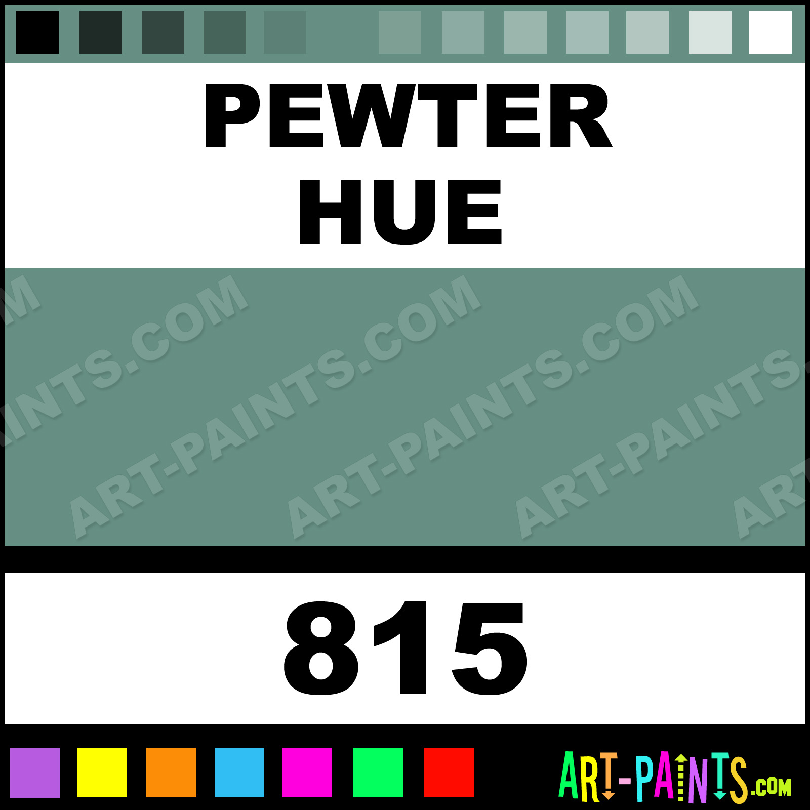 This beautiful Rembrandt Oil shade is called Pewter, and comes from a company called Talens. Their product number, along with the HTML color code, RGB, and CMYK codes are listed below. This Beautiful Shade of Pewter and others can be found in the Talens Rembrandt Art Paint Gallery! Also be sure to browse through the other wonderful Professional Color Galleries to see more of Talens Rembrandt Oil Brand Paints and other Paint Manufacturers. And as always, Paint Paint Paint! -Art-Paints.com