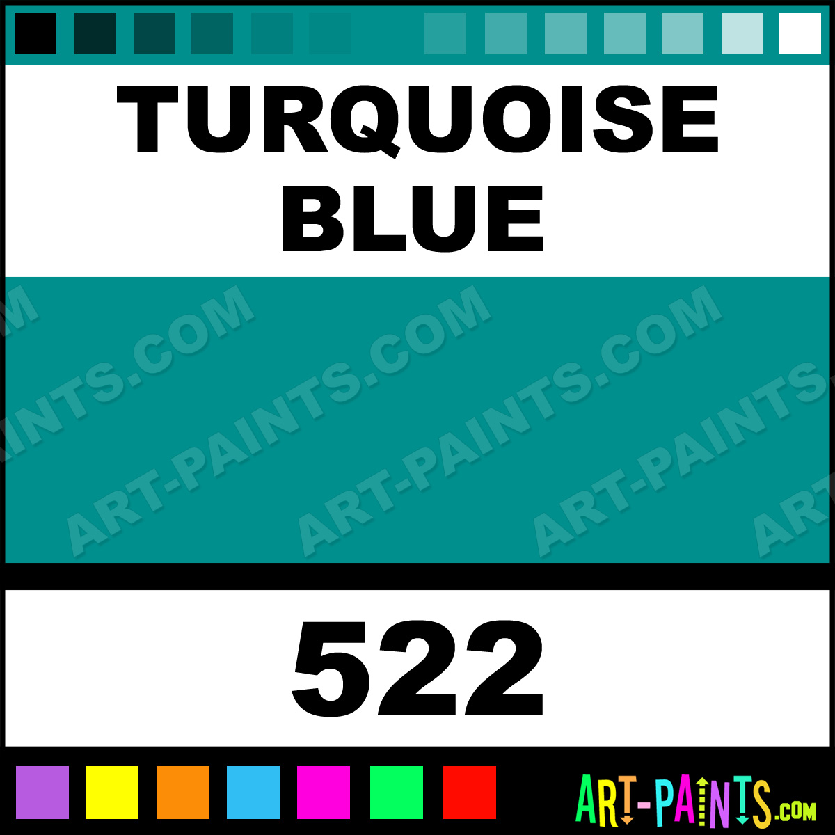 This beautiful Rembrandt Oil shade is called Turquoise Blue, and comes from a company called Talens. Their product number, along with the HTML color code, RGB, and CMYK codes are listed below. This Beautiful Shade of Turquoise Blue and others can be found in the Talens Rembrandt Art Paint Gallery! Also be sure to browse through the other wonderful Professional Color Galleries to see more of Talens Rembrandt Oil Brand Paints and other Paint Manufacturers. And as always, Paint Paint Paint! -Art-Paints.com