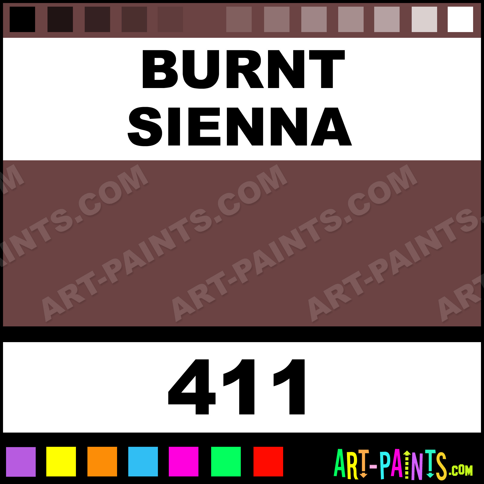 This beautiful Van Gogh Oil shade is called Burnt Sienna, and comes from a company called Talens. Their product number, along with the HTML color code, RGB, and CMYK codes are listed below. This Beautiful Shade of Burnt Sienna and others can be found in the Talens Van Gogh Art Paint Gallery! Also be sure to browse through the other wonderful Professional Color Galleries to see more of Talens Van Gogh Oil Brand Paints and other Paint Manufacturers. And as always, Paint Paint Paint! -Art-Paints.com