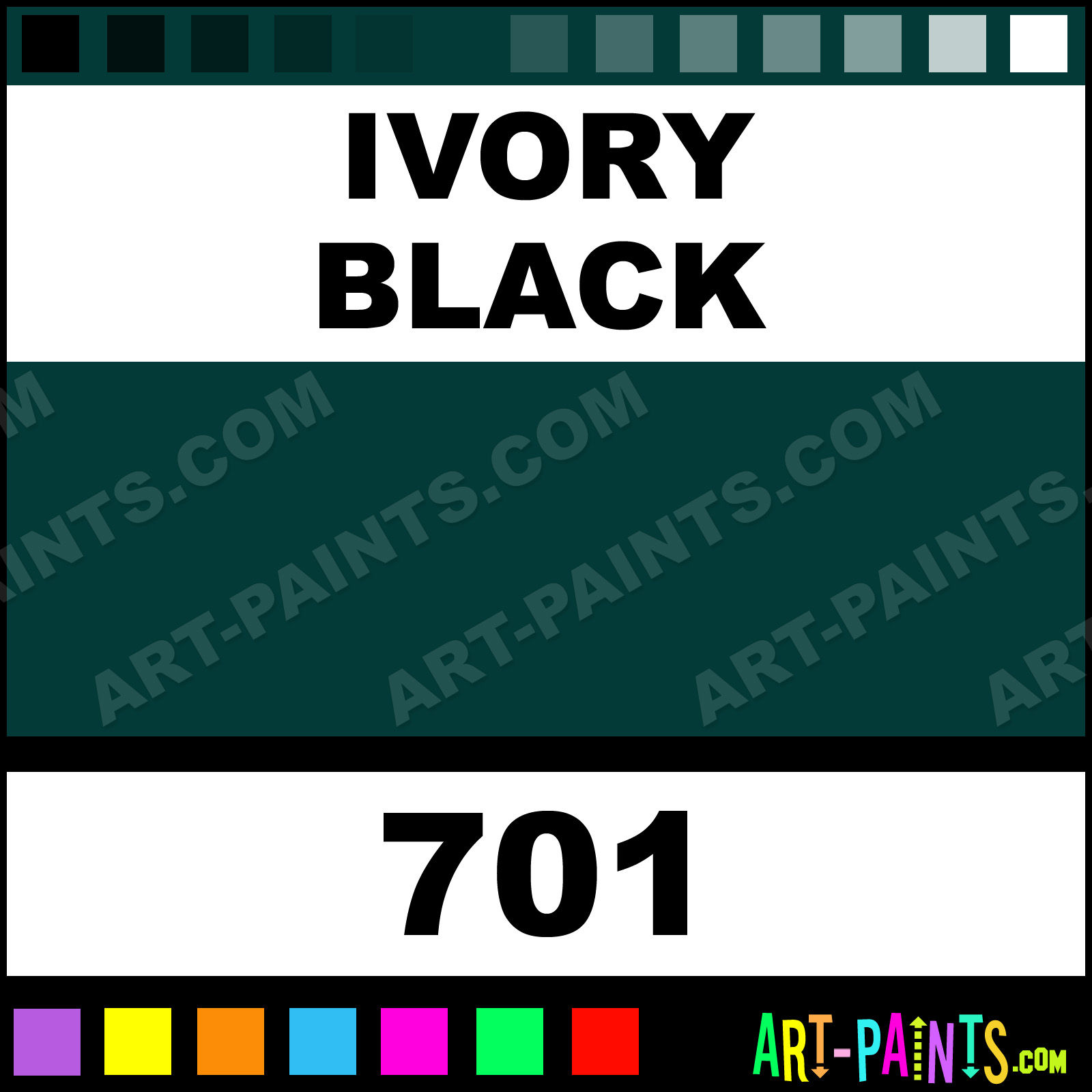 This beautiful Van Gogh Oil shade is called Ivory Black, and comes from a company called Talens. Their product number, along with the HTML color code, RGB, and CMYK codes are listed below. This Beautiful Shade of Ivory Black and others can be found in the Talens Van Gogh Art Paint Gallery! Also be sure to browse through the other wonderful Professional Color Galleries to see more of Talens Van Gogh Oil Brand Paints and other Paint Manufacturers. And as always, Paint Paint Paint! -Art-Paints.com