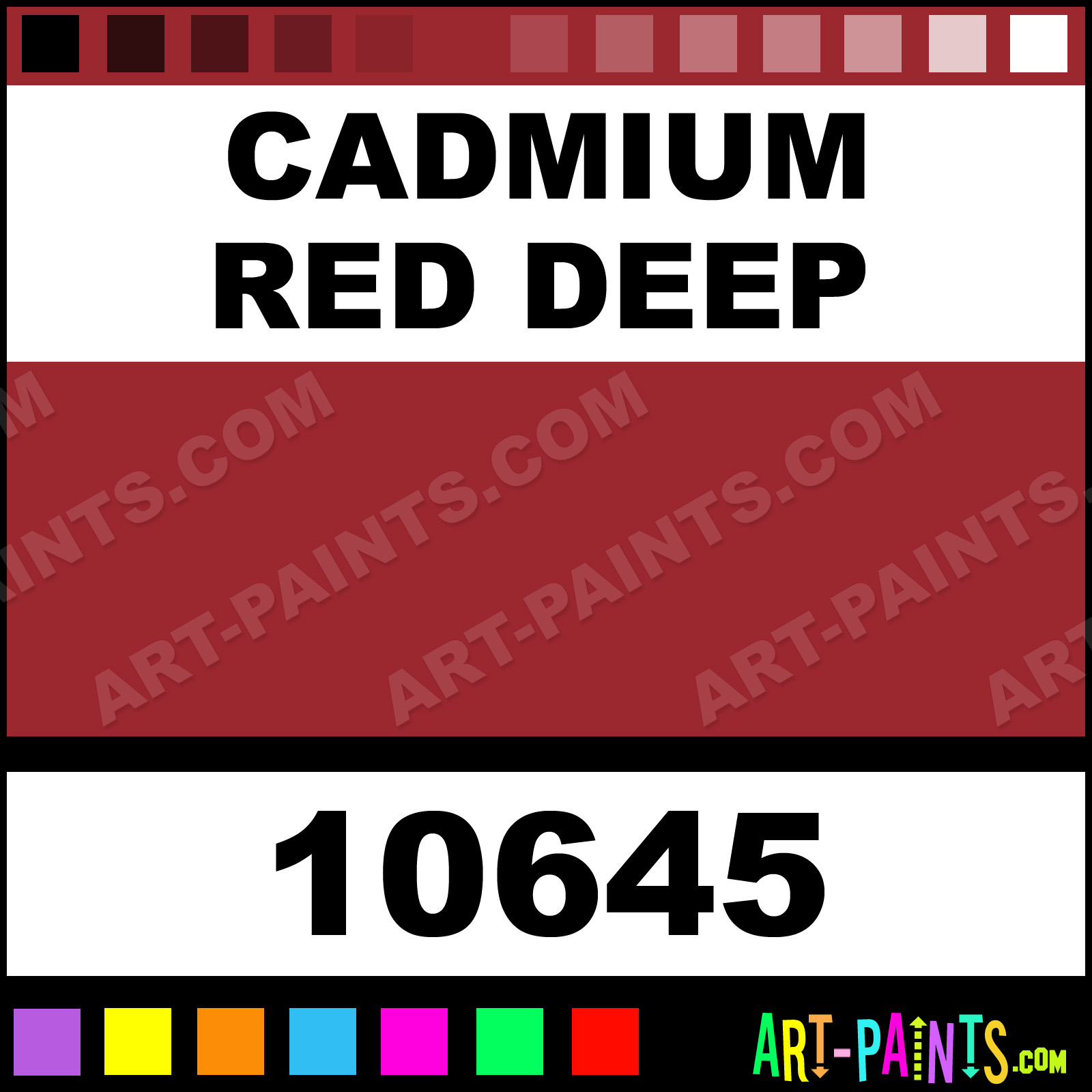 This beautiful Artist Oil shade is called Cadmium Red Deep, and comes from a company called Utrecht. Their product number, along with the HTML color code, RGB, and CMYK codes are listed below. This Beautiful Shade of Cadmium Red Deep and others can be found in the Utrecht Artist Art Paint Gallery! Also be sure to browse through the other wonderful Professional Color Galleries to see more of Utrecht Artist Oil Brand Paints and other Paint Manufacturers. And as always, Paint Paint Paint! -Art-Paints.com