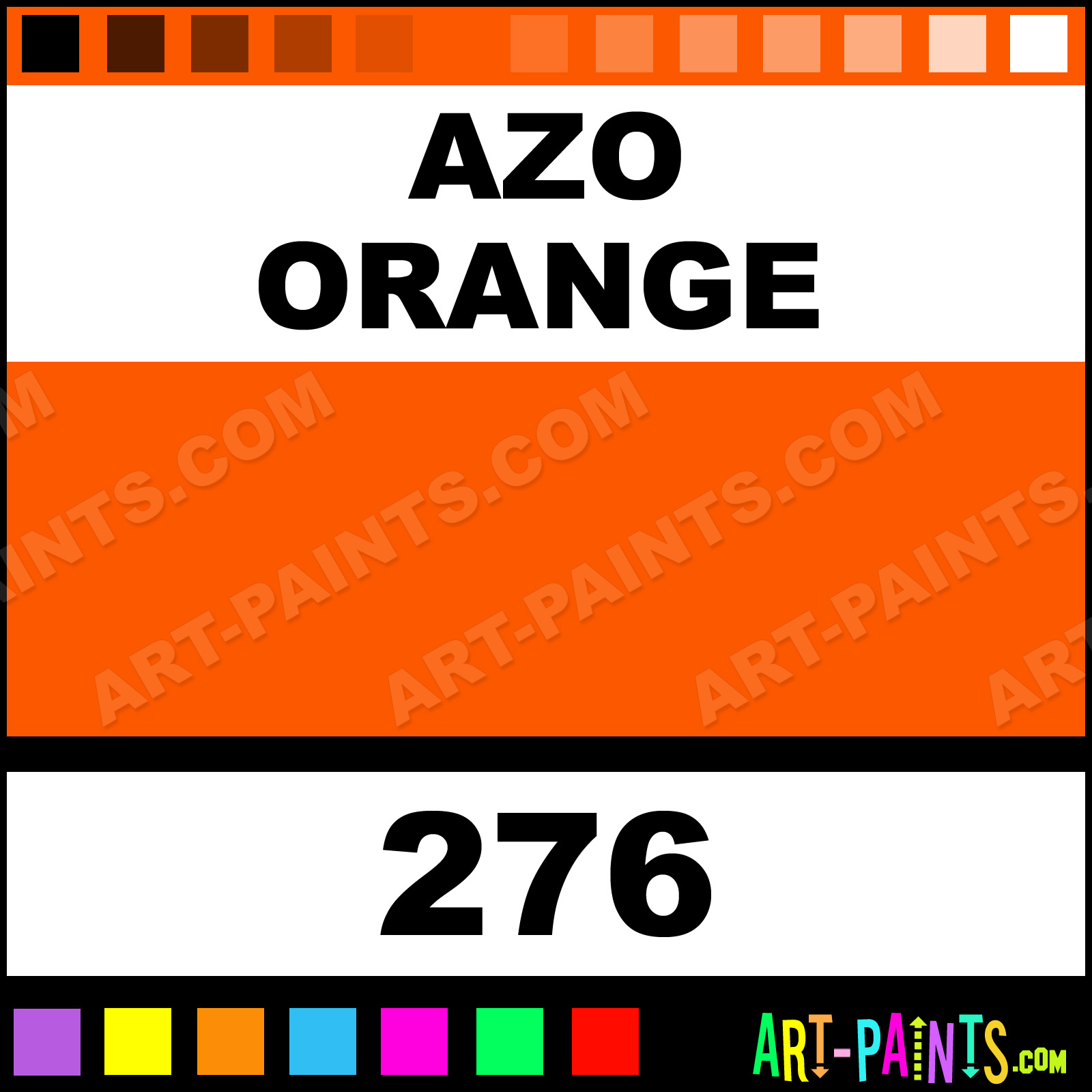 This beautiful H2Oil Oil shade is called Azo Orange, and comes from a company called Van Gogh. Their product number, along with the HTML color code, RGB, and CMYK codes are listed below. This Beautiful Shade of Azo Orange and others can be found in the Van Gogh H2Oil Art Paint Gallery! Also be sure to browse through the other wonderful Professional Color Galleries to see more of Van Gogh H2Oil Oil Brand Paints and other Paint Manufacturers. And as always, Paint Paint Paint! -Art-Paints.com