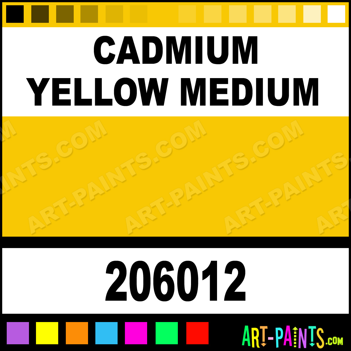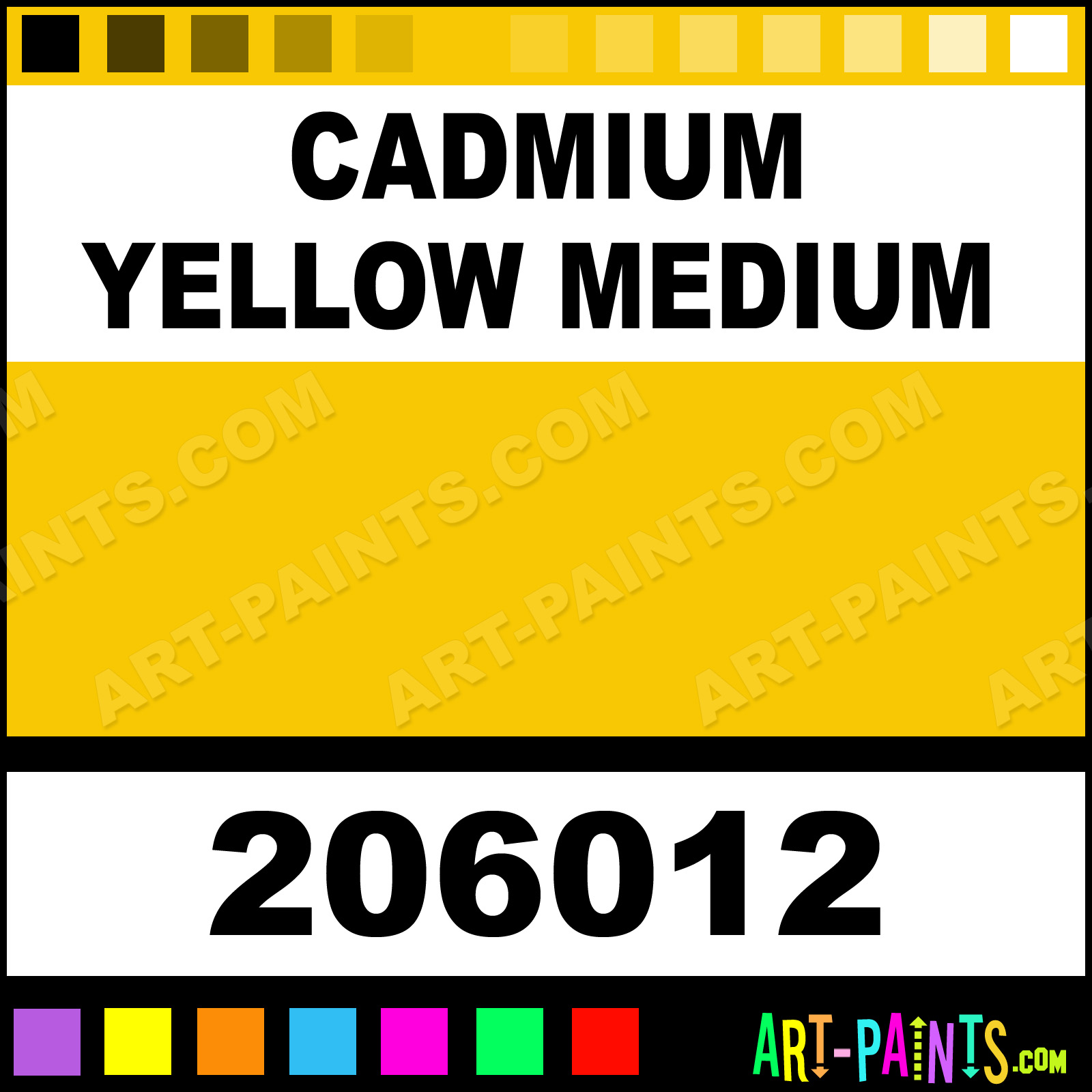 This beautiful Handmade Oil shade is called Cadmium Yellow Medium, and comes from a company called Williamsburg. Their product number, along with the HTML color code, RGB, and CMYK codes are listed below. This Beautiful Shade of Cadmium Yellow Medium and others can be found in the Williamsburg Handmade Art Paint Gallery! Also be sure to browse through the other wonderful Professional Color Galleries to see more of Williamsburg Handmade Oil Brand Paints and other Paint Manufacturers. And as always, Paint Paint Paint! -Art-Paints.com