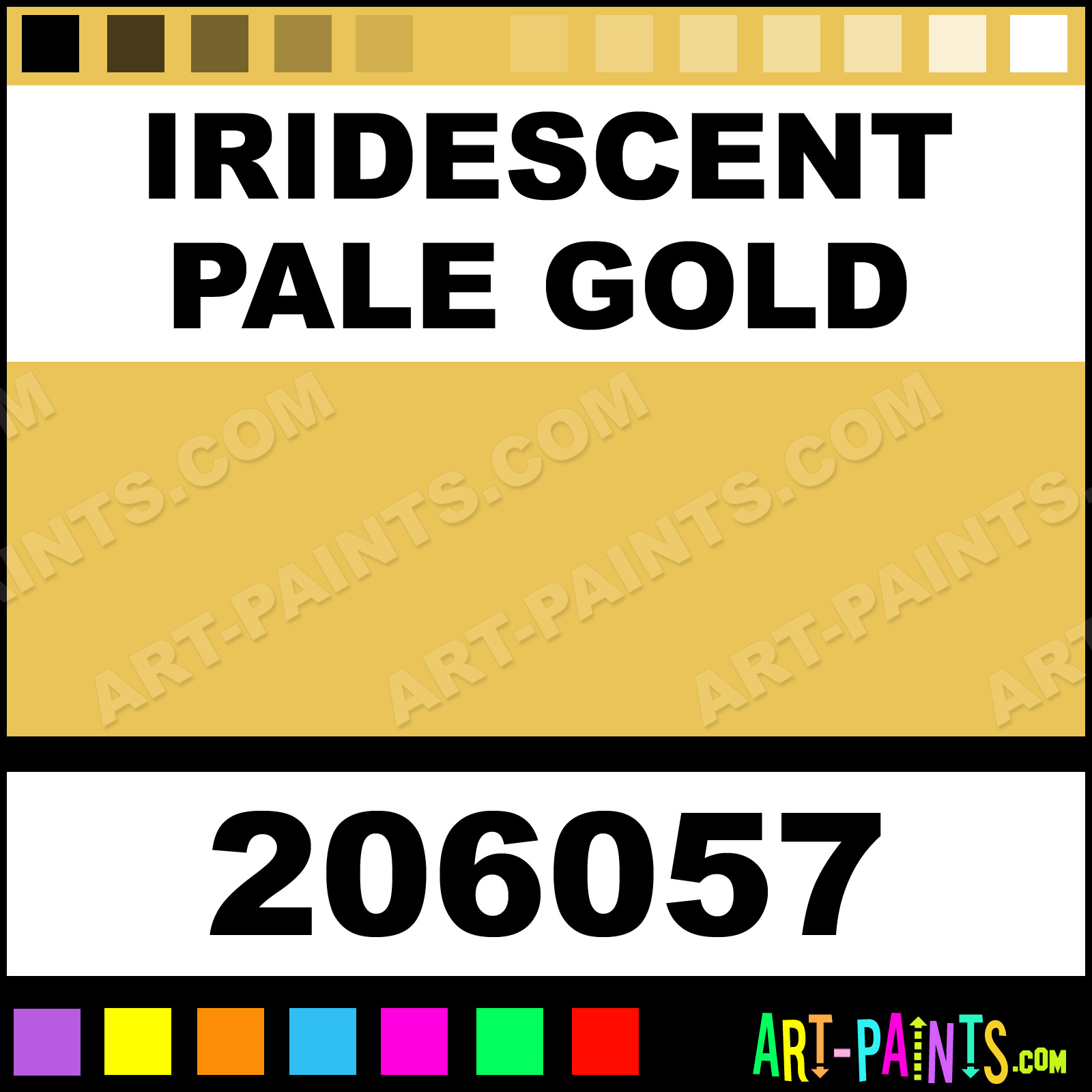 This beautiful Handmade Oil shade is called Iridescent Pale Gold, and comes from a company called Williamsburg. Their product number, along with the HTML color code, RGB, and CMYK codes are listed below. This Beautiful Shade of Iridescent Pale Gold and others can be found in the Williamsburg Handmade Art Paint Gallery! Also be sure to browse through the other wonderful Professional Color Galleries to see more of Williamsburg Handmade Oil Brand Paints and other Paint Manufacturers. And as always, Paint Paint Paint! -Art-Paints.com