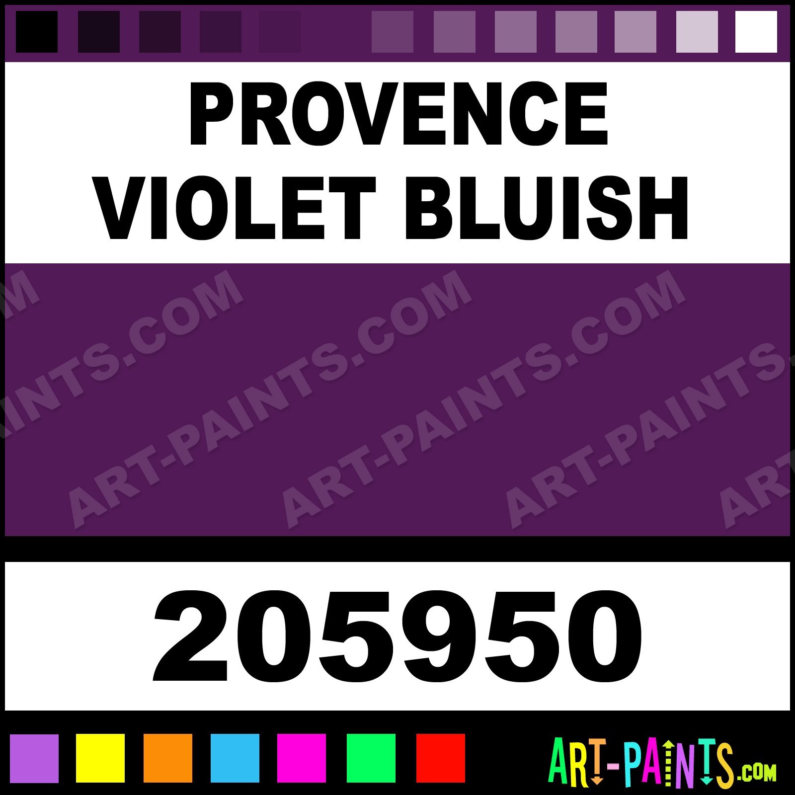 This beautiful Handmade Oil shade is called Provence Violet Bluish, and comes from a company called Williamsburg. Their product number, along with the HTML color code, RGB, and CMYK codes are listed below. This Beautiful Shade of Provence Violet Bluish and others can be found in the Williamsburg Handmade Art Paint Gallery! Also be sure to browse through the other wonderful Professional Color Galleries to see more of Williamsburg Handmade Oil Brand Paints and other Paint Manufacturers. And as always, Paint Paint Paint! -Art-Paints.com