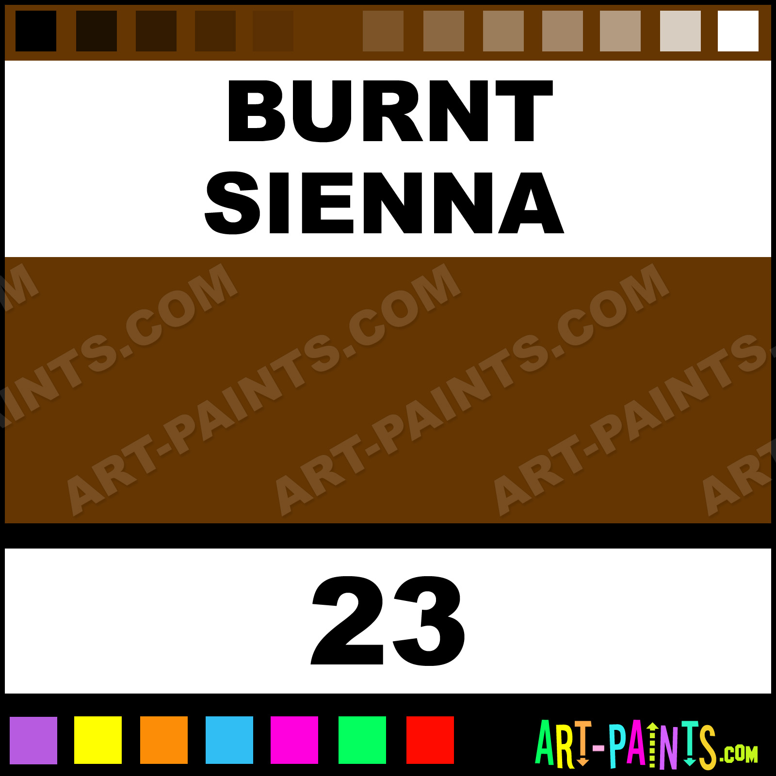 This beautiful Native Italian Earth Oil shade is called Burnt Sienna, and comes from a company called Williamsburg. Their product number, along with the HTML color code, RGB, and CMYK codes are listed below. This Beautiful Shade of Burnt Sienna and others can be found in the Williamsburg Native Italian Earth Art Paint Gallery! Also be sure to browse through the other wonderful Professional Color Galleries to see more of Williamsburg Native Italian Earth Oil Brand Paints and other Paint Manufacturers. And as always, Paint Paint Paint! -Art-Paints.com