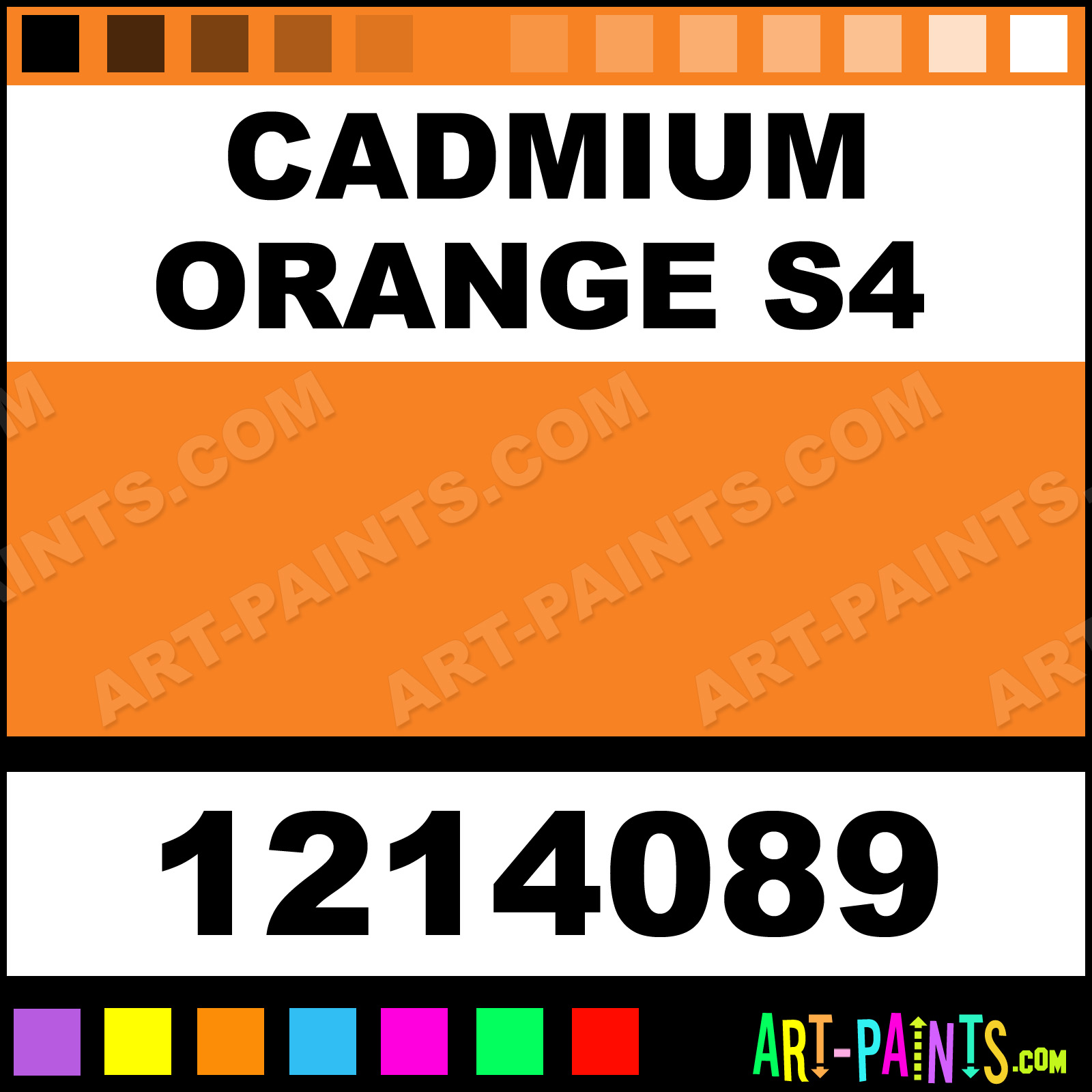 This beautiful Artists Oil shade is called Cadmium Orange S4, and comes from a company called Winsor and Newton. Their product number, along with the HTML color code, RGB, and CMYK codes are listed below. This Beautiful Shade of Cadmium Orange S4 and others can be found in the Winsor and Newton Artists Art Paint Gallery! Also be sure to browse through the other wonderful Professional Color Galleries to see more of Winsor and Newton Artists Oil Brand Paints and other Paint Manufacturers. And as always, Paint Paint Paint! -Art-Paints.com