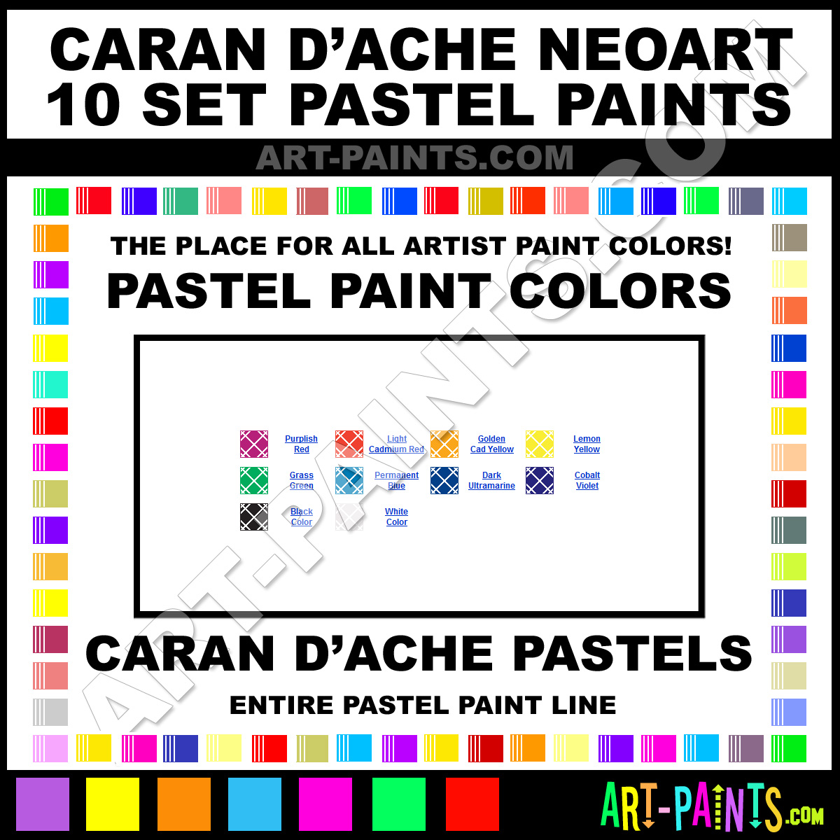 Caran Dache makes a beautiful Neoart 10 Set Paint Brand. With a complete line of Pastel Color Paints, 10 colors in all, available in beautiful hues and colors, they will no doubt keep you painting and smiling at the same time. This brand is very unique and exquisite!