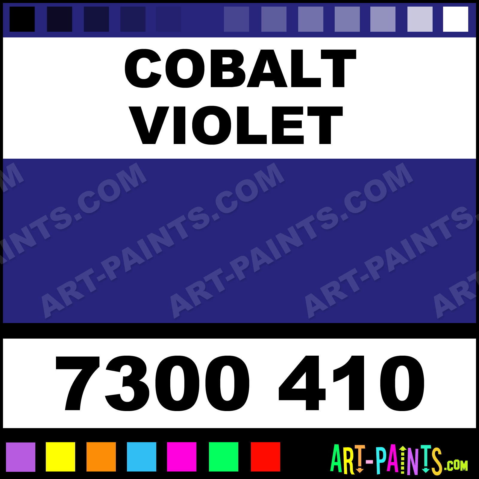 This beautiful Neoart 10 Set Pastel shade is called Cobalt Violet, and comes from a company called Caran Dache. Their product number, along with the HTML color code, RGB, and CMYK codes are listed below. This Beautiful Shade of Cobalt Violet and others can be found in the Caran Dache Neoart 10 Set Art Paint Gallery! Also be sure to browse through the other wonderful Professional Color Galleries to see more of Caran Dache Neoart 10 Set Pastel Brand Paints and other Paint Manufacturers. And as always, Paint Paint Paint! -Art-Paints.com