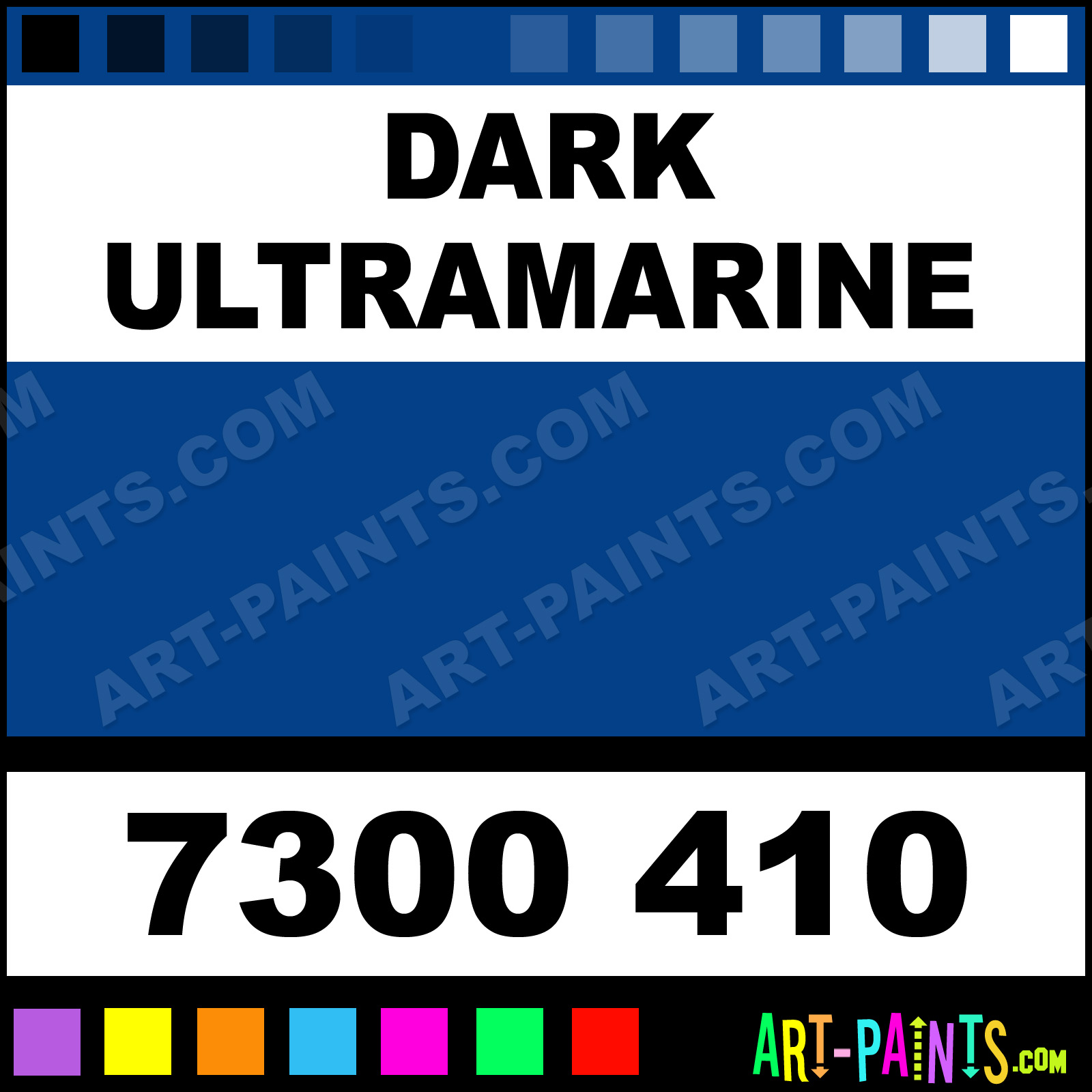 This beautiful Neoart 10 Set Pastel shade is called Dark Ultramarine, and comes from a company called Caran Dache. Their product number, along with the HTML color code, RGB, and CMYK codes are listed below. This Beautiful Shade of Dark Ultramarine and others can be found in the Caran Dache Neoart 10 Set Art Paint Gallery! Also be sure to browse through the other wonderful Professional Color Galleries to see more of Caran Dache Neoart 10 Set Pastel Brand Paints and other Paint Manufacturers. And as always, Paint Paint Paint! -Art-Paints.com
