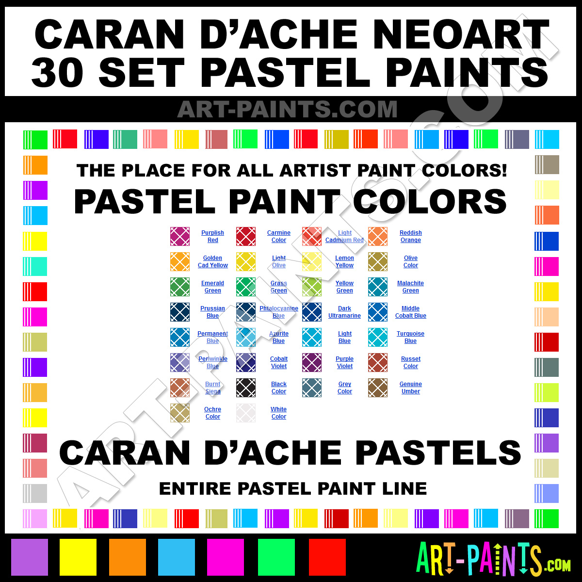 Caran Dache makes a beautiful Neoart 30 Set Paint Brand. With a complete line of Pastel Color Paints, 30 colors in all, available in beautiful hues and colors, they will no doubt keep you painting and smiling at the same time. This brand is very unique and exquisite!