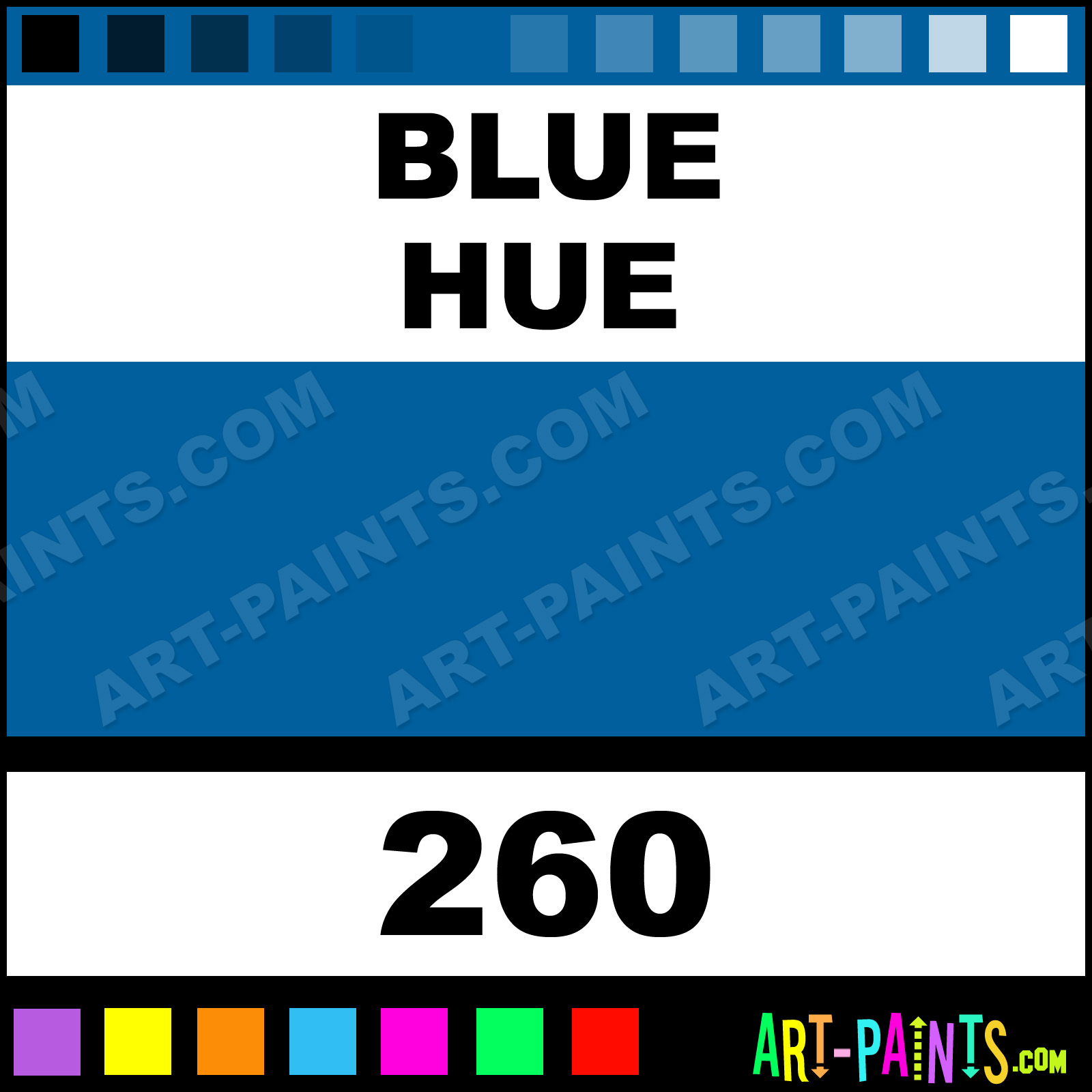 Prussian Blue Phtalocyanine Blue Dark Ultramarine Middle Cobalt Blue Permanent Blue Sky Blue Azurite Blue