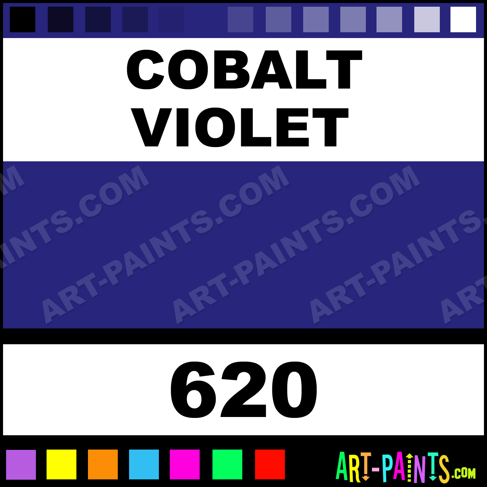This beautiful Neoart Pastel shade is called Cobalt Violet, and comes from a company called Caran Dache. Their product number, along with the HTML color code, RGB, and CMYK codes are listed below. This Beautiful Shade of Cobalt Violet and others can be found in the Caran Dache Neoart Art Paint Gallery! Also be sure to browse through the other wonderful Professional Color Galleries to see more of Caran Dache Neoart Pastel Brand Paints and other Paint Manufacturers. And as always, Paint Paint Paint! -Art-Paints.com