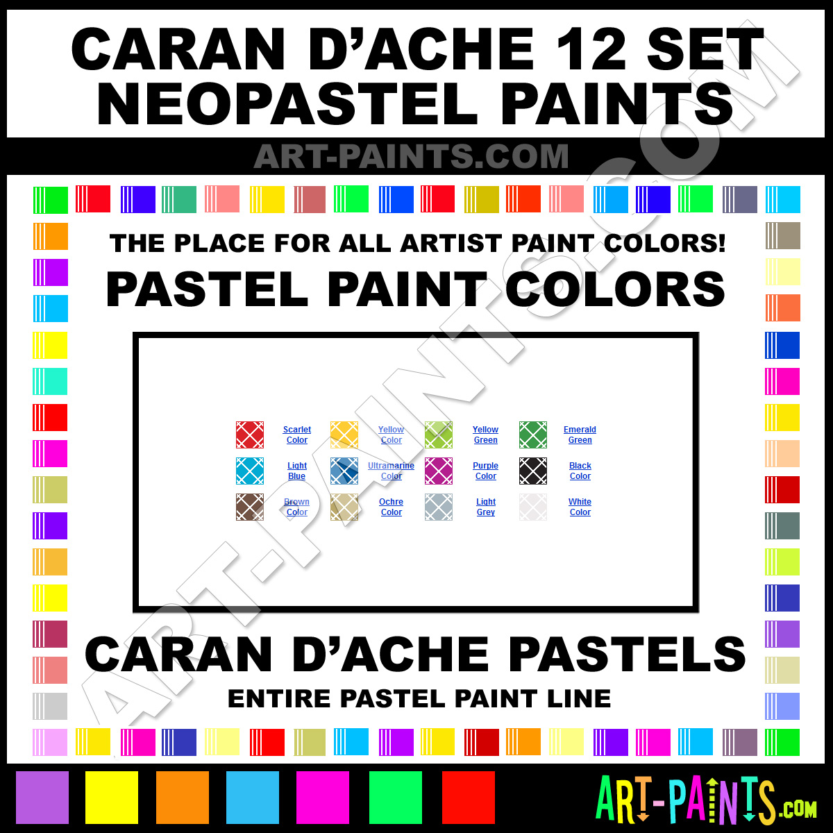 Caran Dache makes a beautiful Neopastel 12 Set Paint Brand. With a complete line of Pastel Color Paints, 12 colors in all, available in beautiful hues and colors, they will no doubt keep you painting and smiling at the same time. This brand is very unique and exquisite!