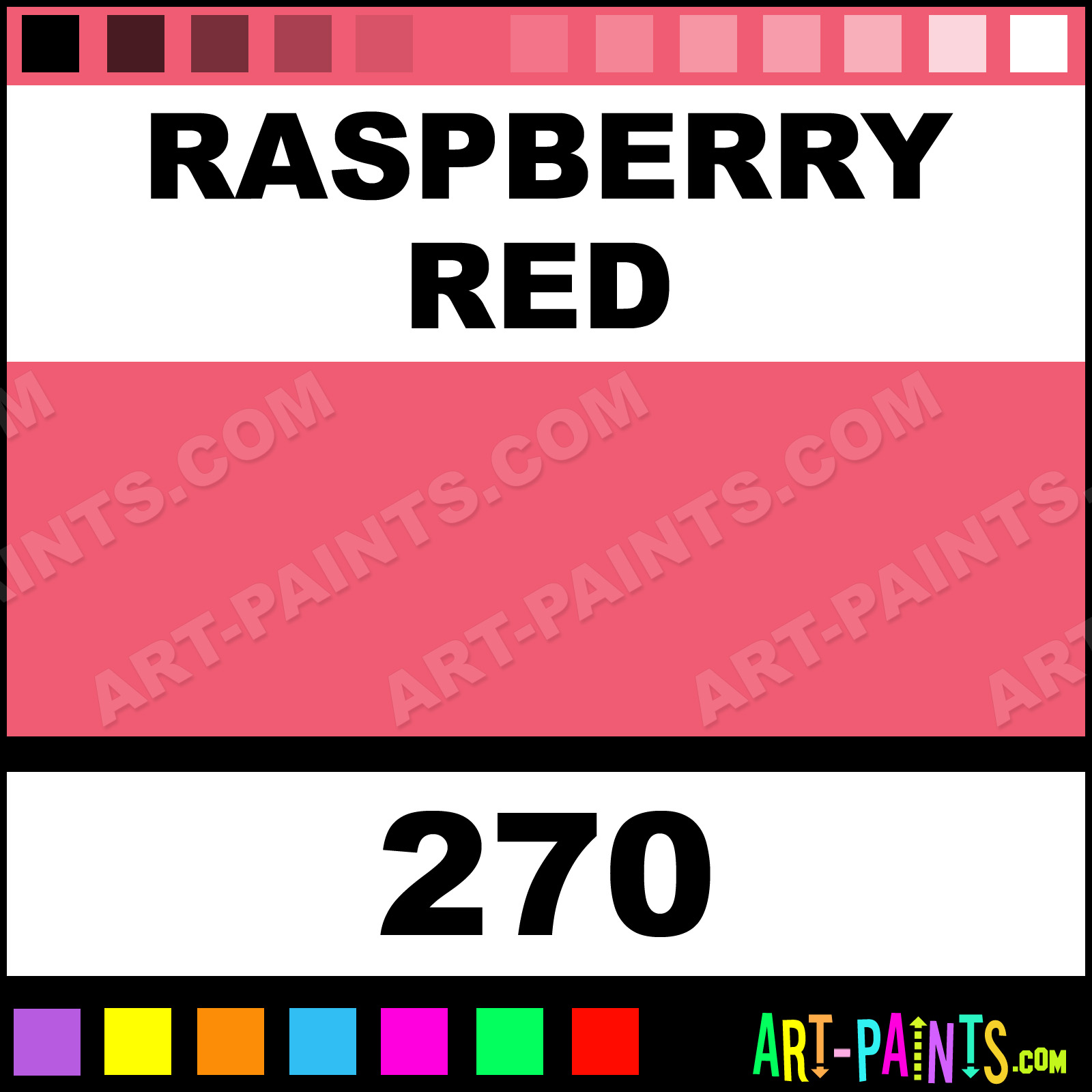 This beautiful Neopastel Pastel shade is called Raspberry Red, and comes from a company called Caran Dache. Their product number, along with the HTML color code, RGB, and CMYK codes are listed below. This Beautiful Shade of Raspberry Red and others can be found in the Caran Dache Neopastel Art Paint Gallery! Also be sure to browse through the other wonderful Professional Color Galleries to see more of Caran Dache Neopastel Pastel Brand Paints and other Paint Manufacturers. And as always, Paint Paint Paint! -Art-Paints.com