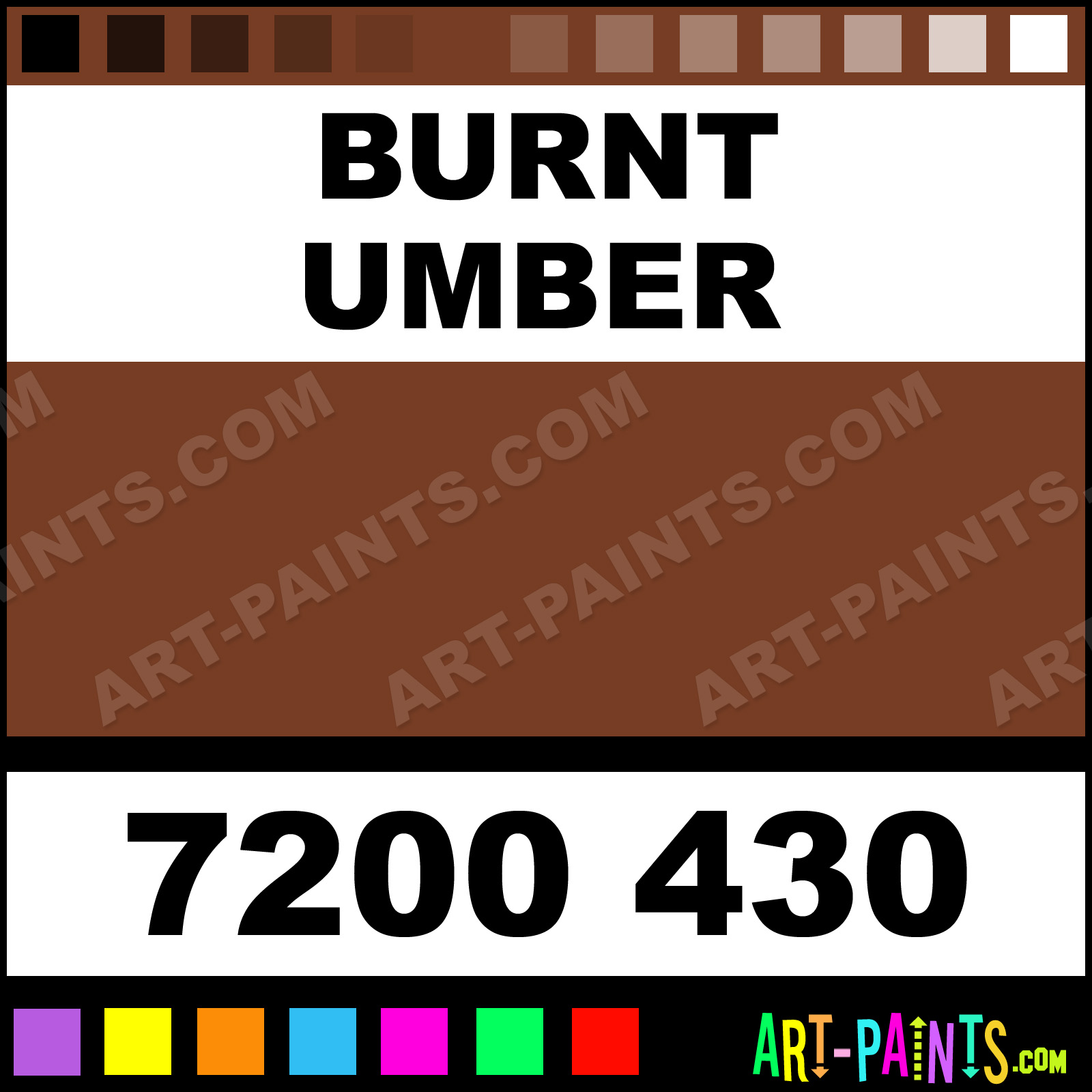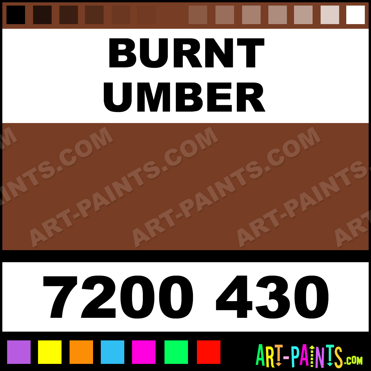 This beautiful Soft Pastels 30 Set Pastel shade is called Burnt Umber, and comes from a company called Caran Dache. Their product number, along with the HTML color code, RGB, and CMYK codes are listed below. This Beautiful Shade of Burnt Umber and others can be found in the Caran Dache Soft Pastels 30 Set Art Paint Gallery! Also be sure to browse through the other wonderful Professional Color Galleries to see more of Caran Dache Soft Pastels 30 Set Pastel Brand Paints and other Paint Manufacturers. And as always, Paint Paint Paint! -Art-Paints.com