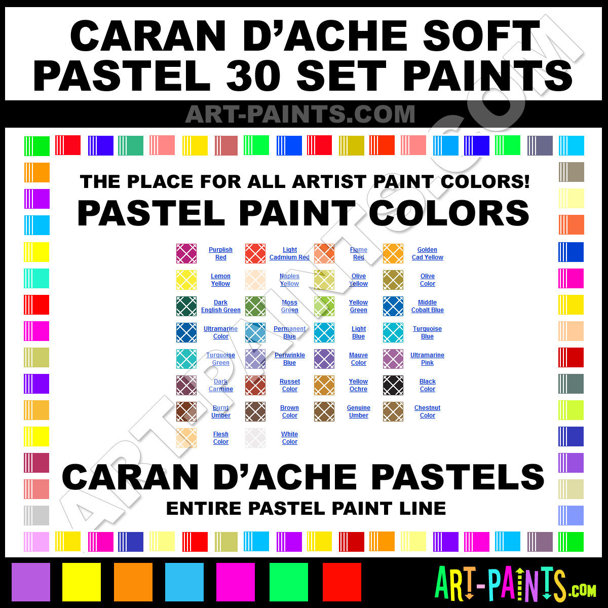 Caran Dache makes a beautiful Soft Pastels 30 Set Paint Brand. With a complete line of Pastel Color Paints, 30 colors in all, available in beautiful hues and colors, they will no doubt keep you painting and smiling at the same time. This brand is very unique and exquisite!