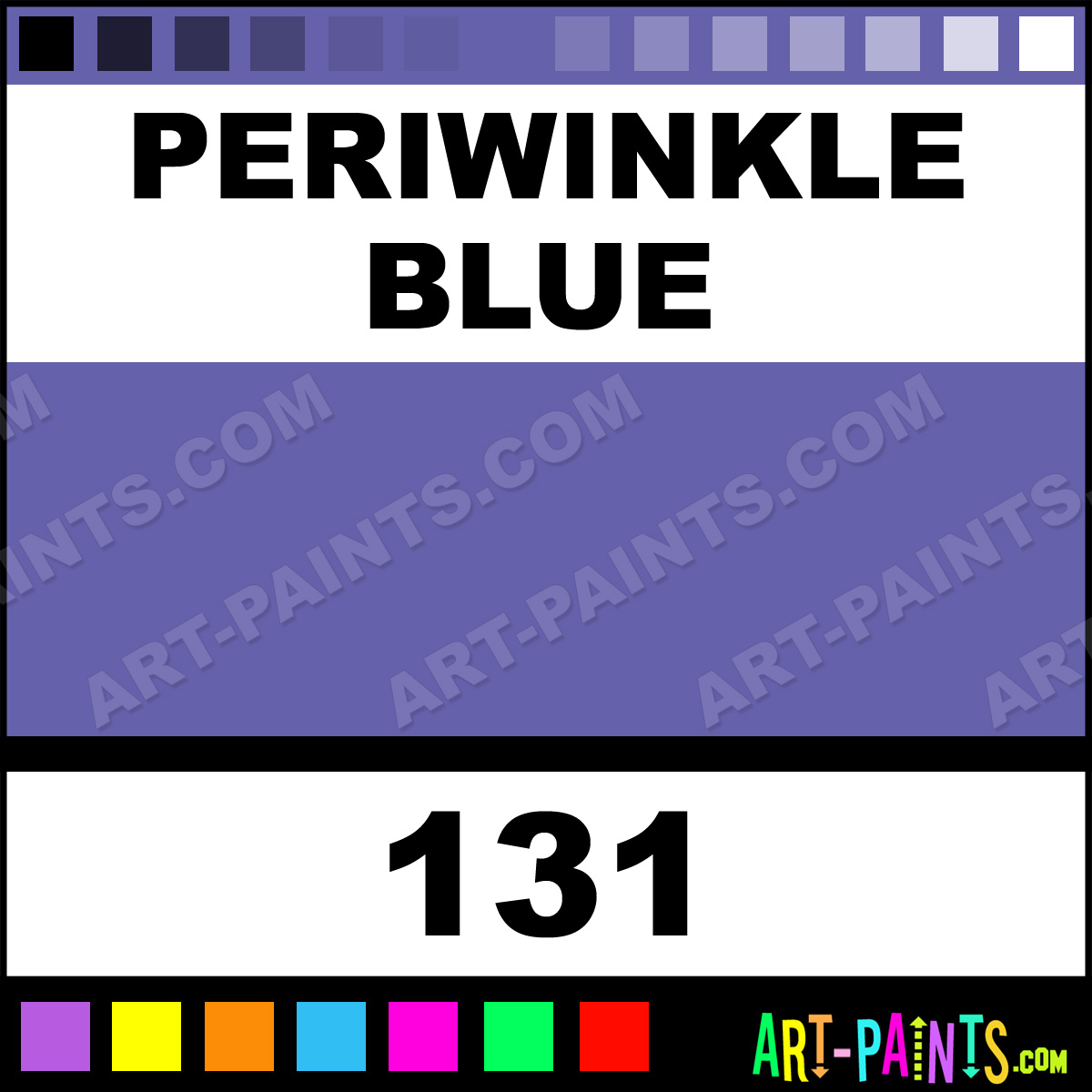 This beautiful Soft Pastels Pastel shade is called Periwinkle Blue, and comes from a company called Caran Dache. Their product number, along with the HTML color code, RGB, and CMYK codes are listed below. This Beautiful Shade of Periwinkle Blue and others can be found in the Caran Dache Soft Pastels Art Paint Gallery! Also be sure to browse through the other wonderful Professional Color Galleries to see more of Caran Dache Soft Pastels Pastel Brand Paints and other Paint Manufacturers. And as always, Paint Paint Paint! -Art-Paints.com
